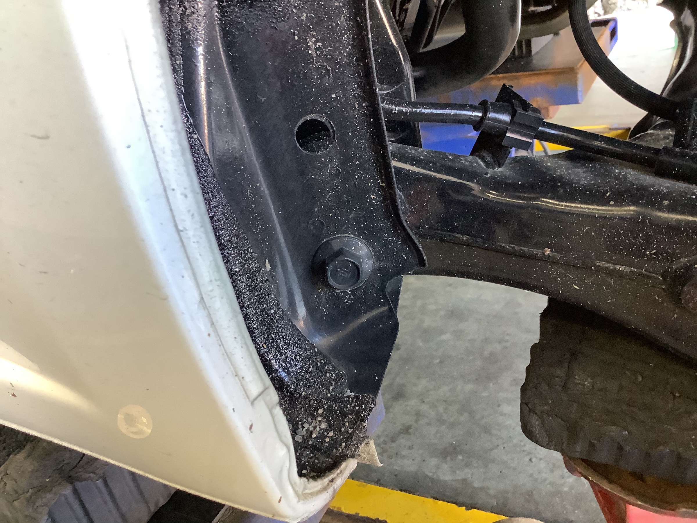 車体とサブフレームを繋いでいるボルトに