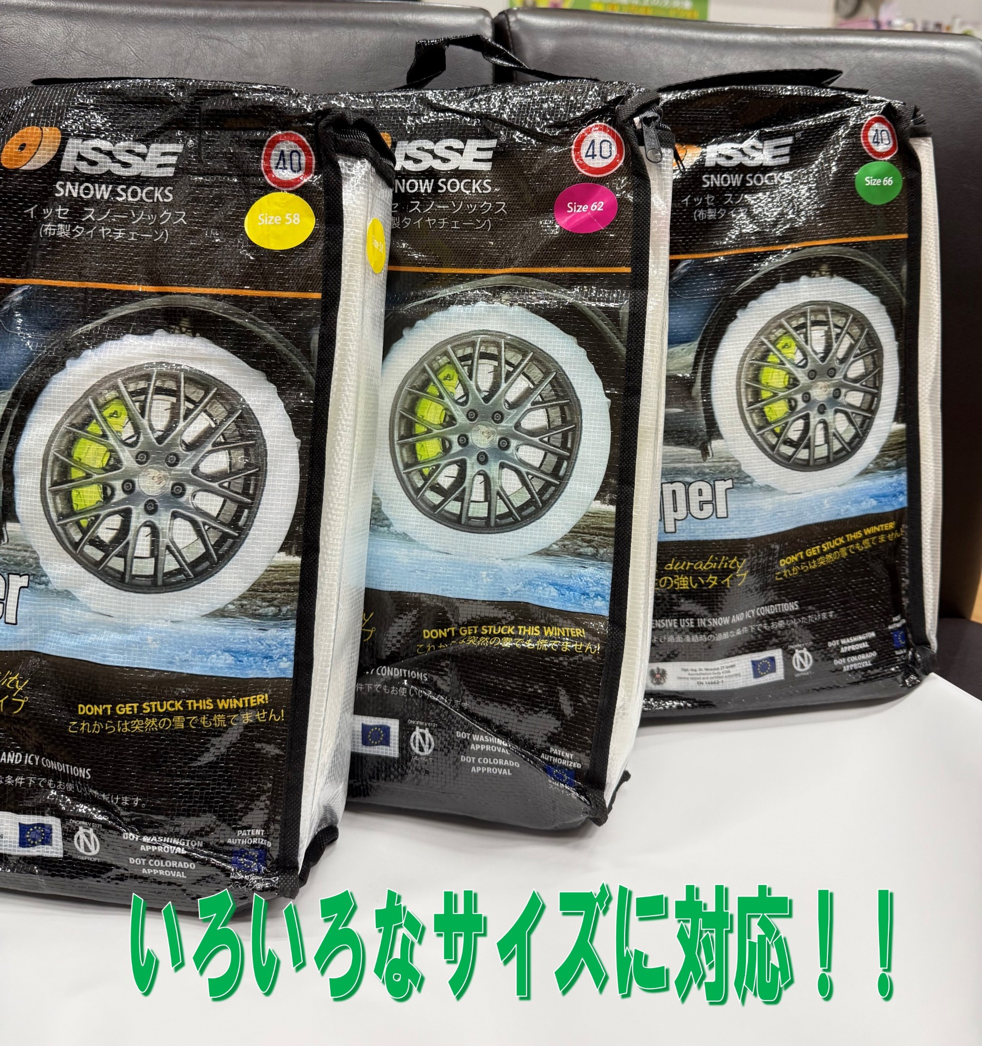 今日はそんな時にあると心強いチェーン『イッセ スノーソックス』です。