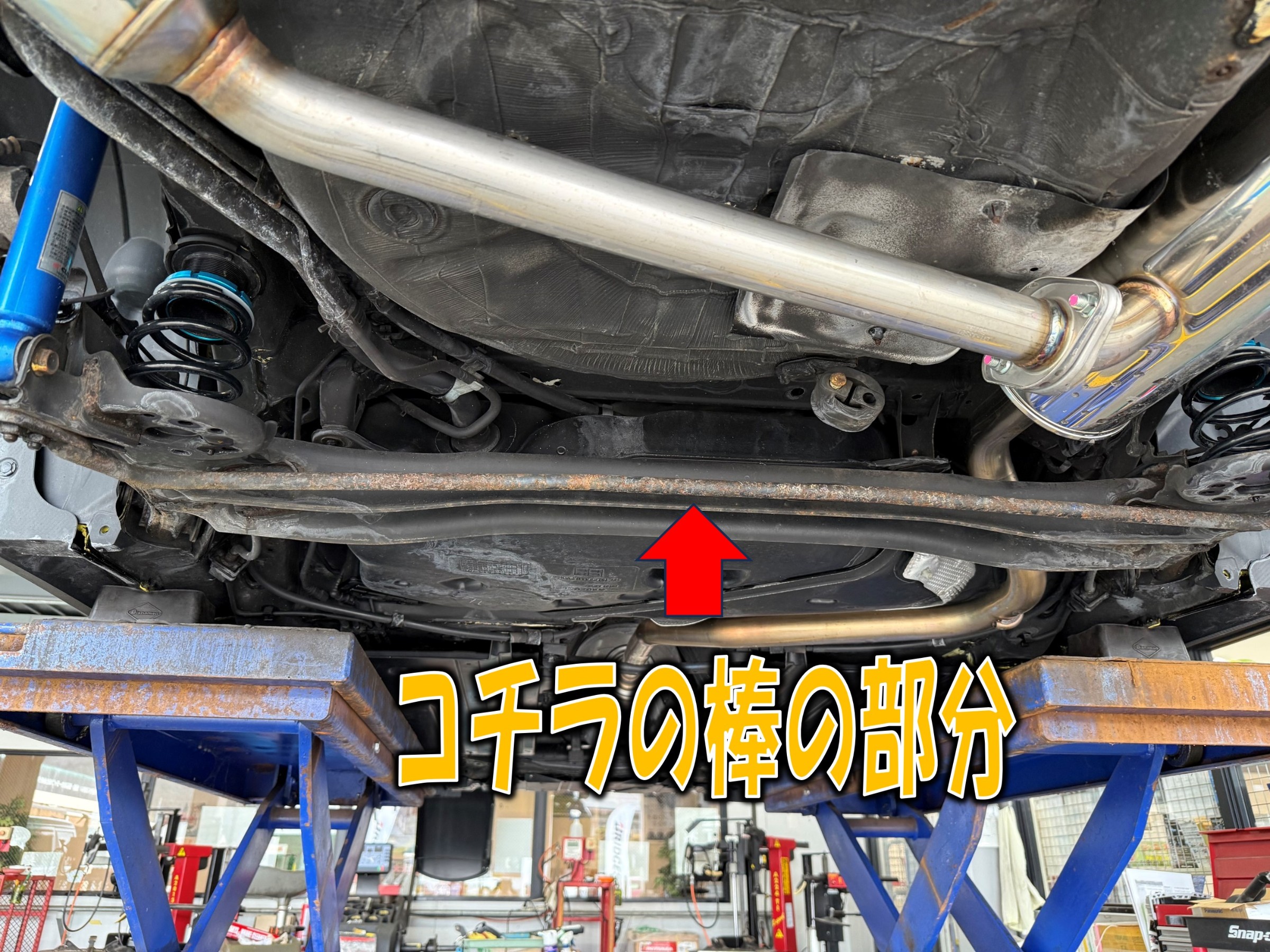 今回施工する錆止め剤は透明でマフラーにも使えるものですのでしっかりと下回り全体に施行していきます!