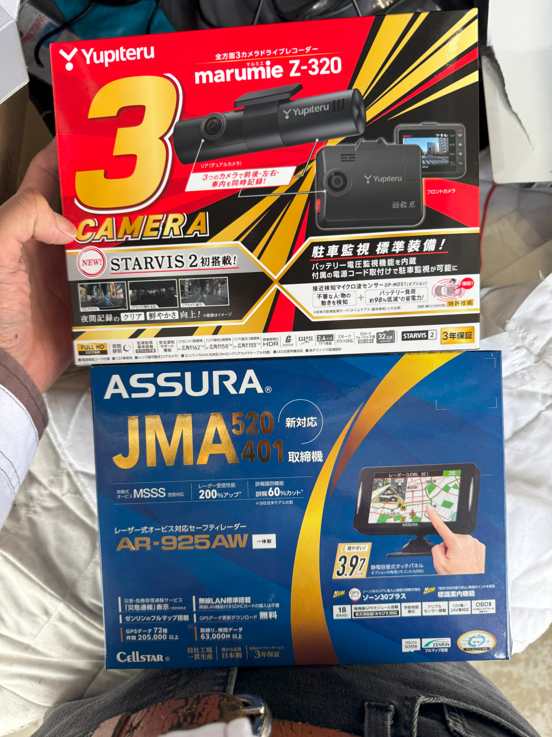 今回取付けしなのはユピテルの3カメラのドラレコと最新の取り締まり機に対応したセルスターのレーダーを取り付けです(^^♪