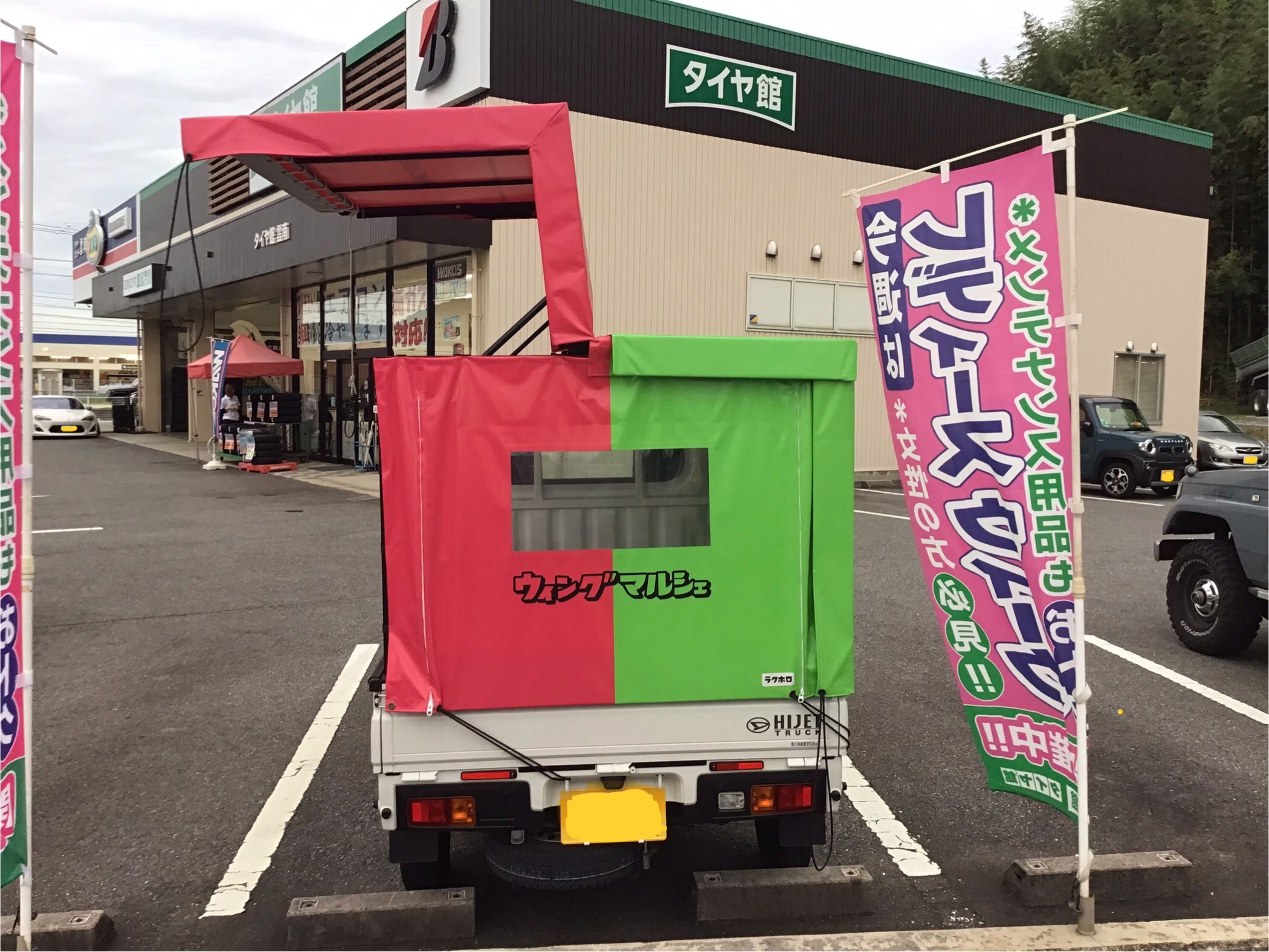 緑側のマルシェは横のスペースは使うものの、開いた部分が屋根になる構造となっており雨天での使用も苦ではないようになっております。