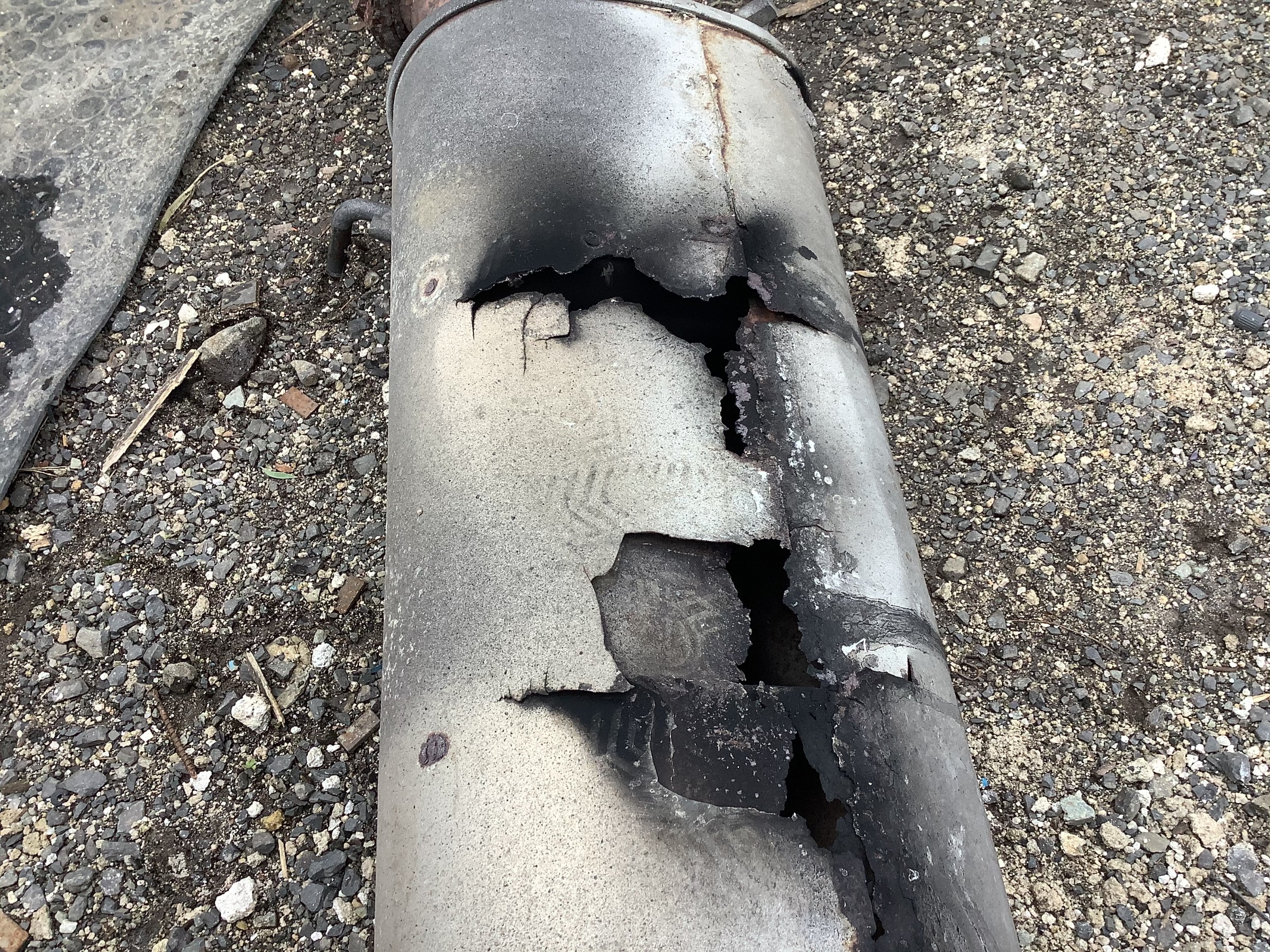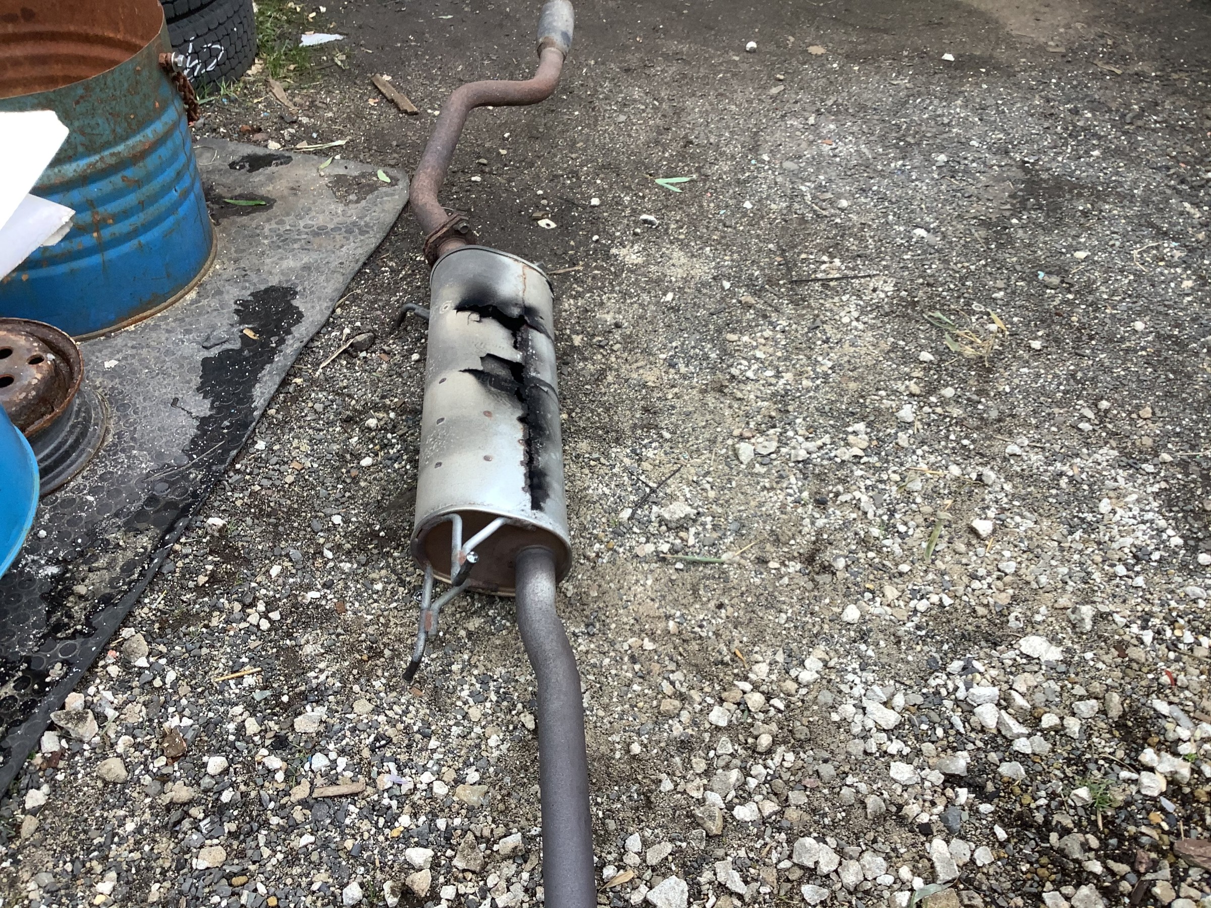 車の下から「ボボボッ」と音が!マフラーに穴が開いてるかも? ポスト 2025年9月15日 こんにちはタイヤ館雲南です。 先日お客様から「車の下から大きな音がする」と伺い点検してみるとマフラーに大きな穴が(◎_◎;) マフラーの交換後、外したマフラーを改めてみてみると かなり大きな穴が出来ており、触るとポロポロ朽ちて取れてしまう状態でした。 お車から変な音がしたらすぐに点検を!