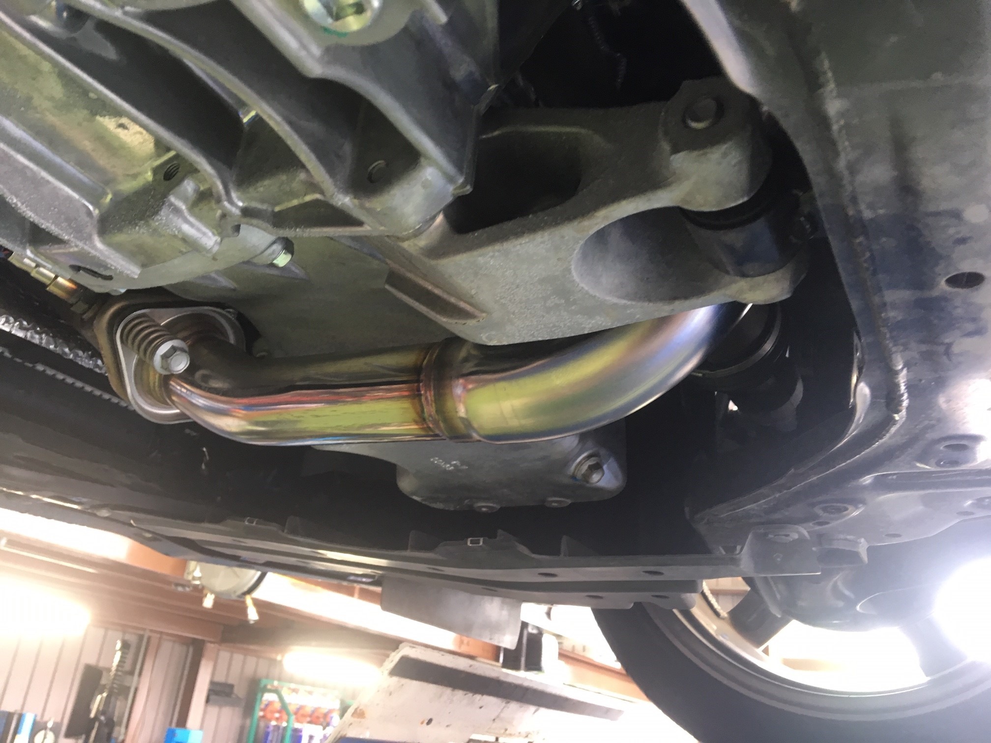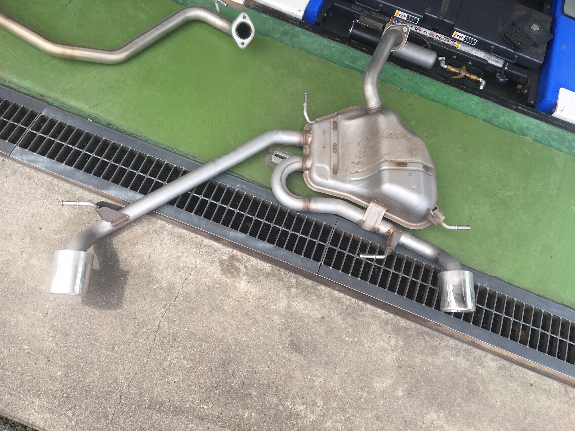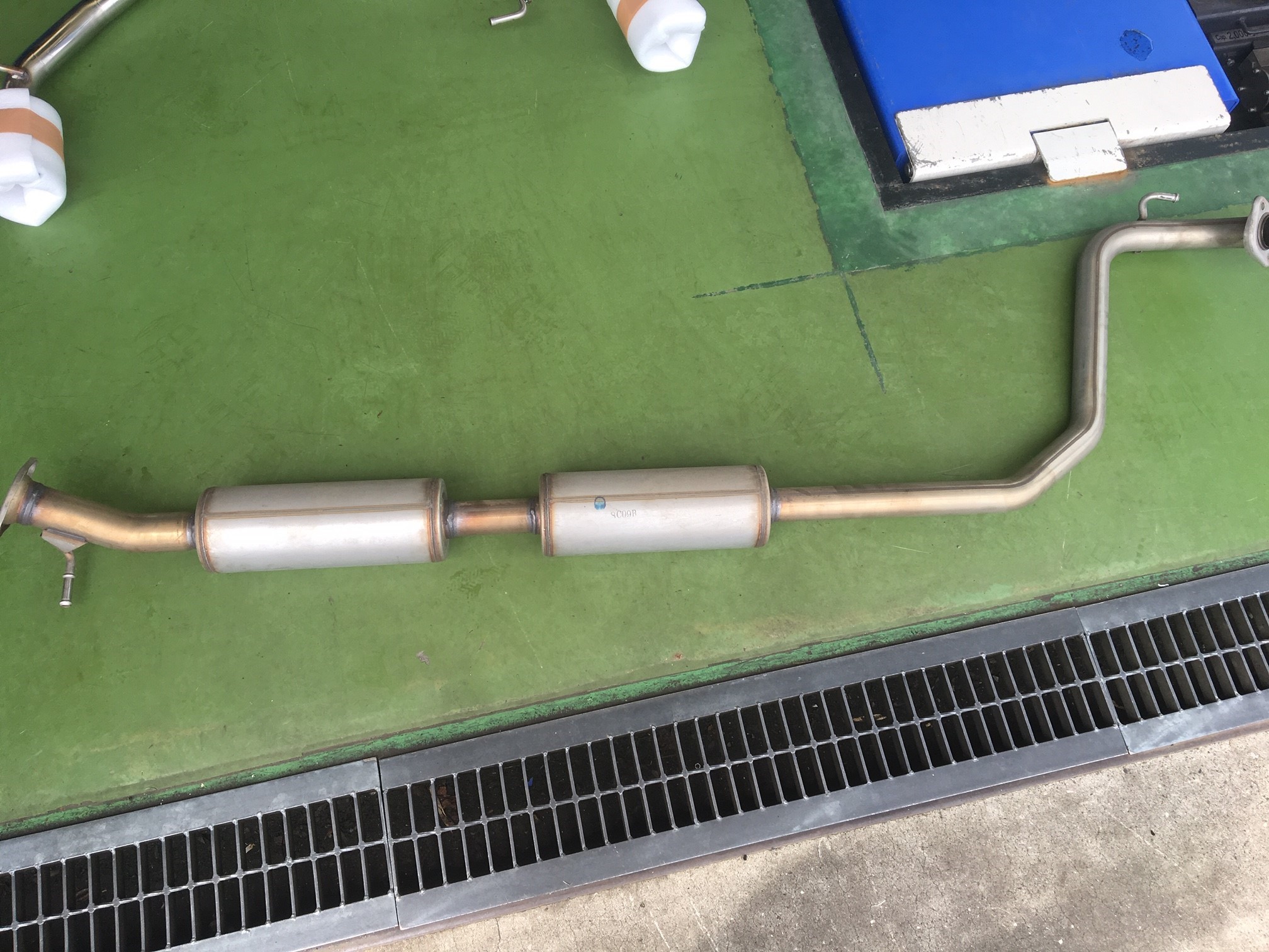 今回のマフラーは出口だけではなくフロントパイプからの交換です