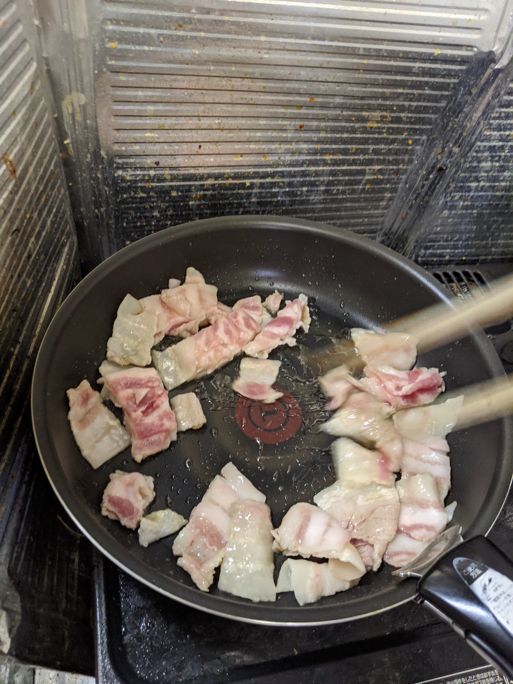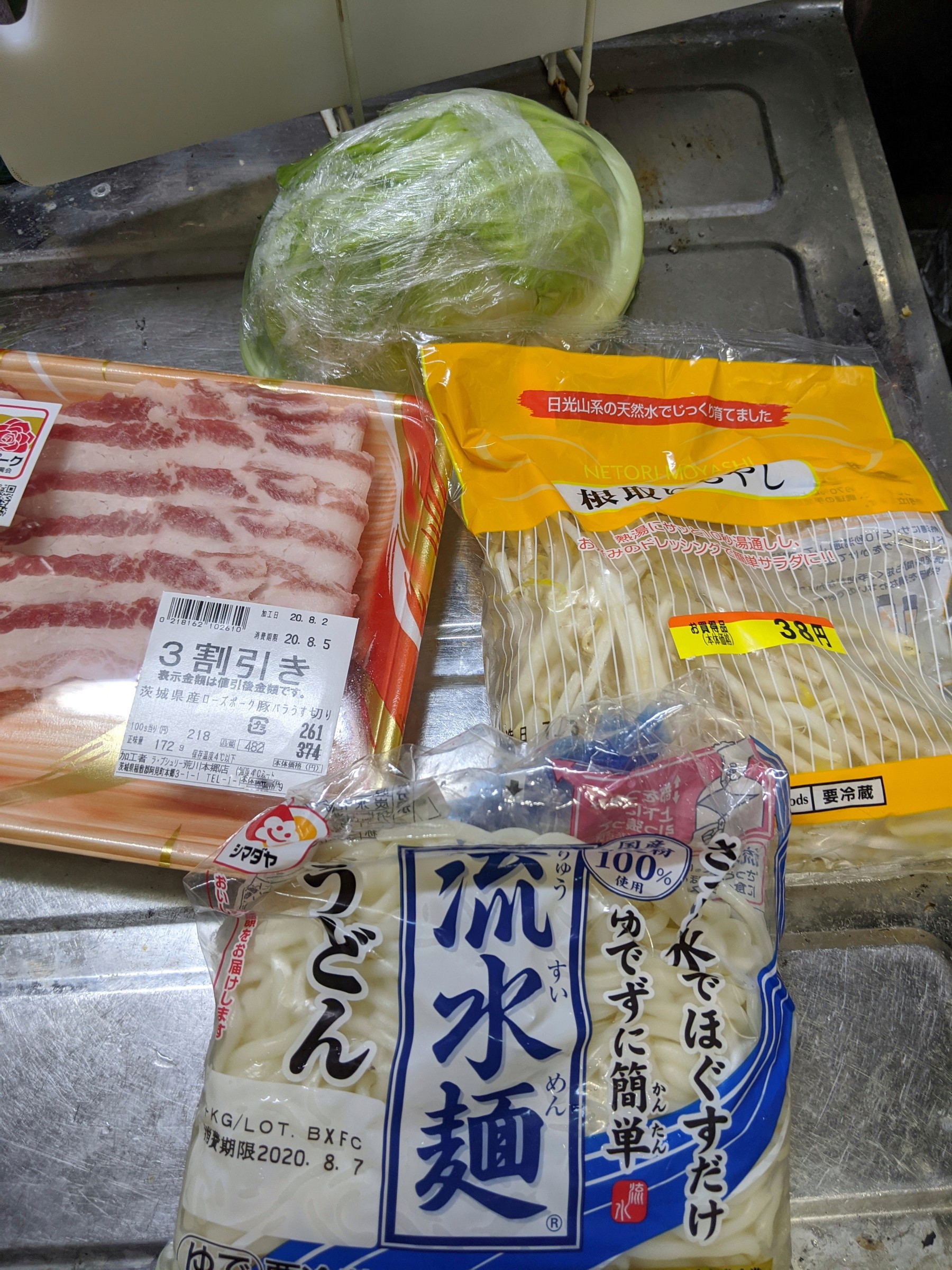 生麺を使うことで調理時間を短縮します。あとは豚バラ肉と野菜を適当に用意しましたが、野菜の分量が少し多すぎた気がします。まぁなんとかなるでしょう、、、