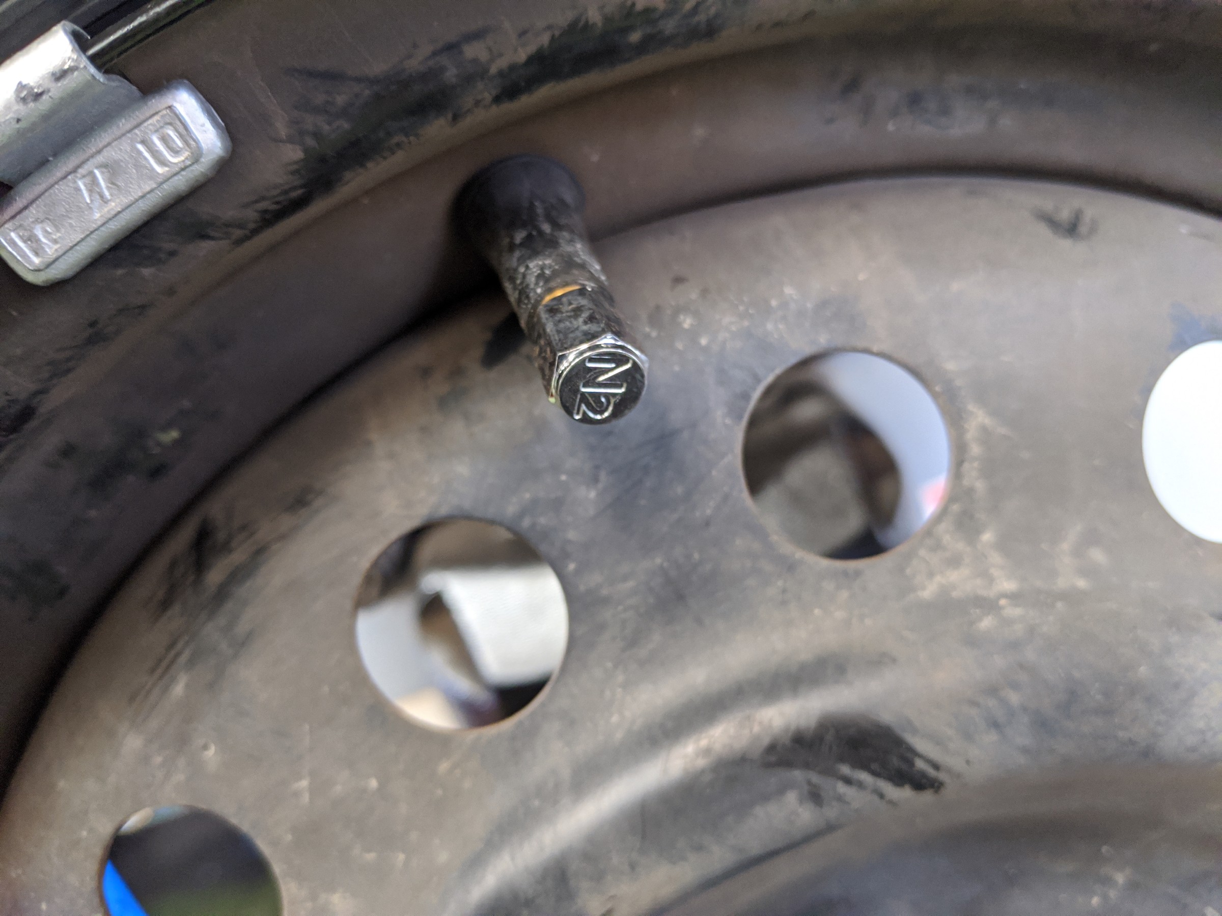 このN2のバルブキャップは、タイヤに窒素ガスが充填されているサインです。