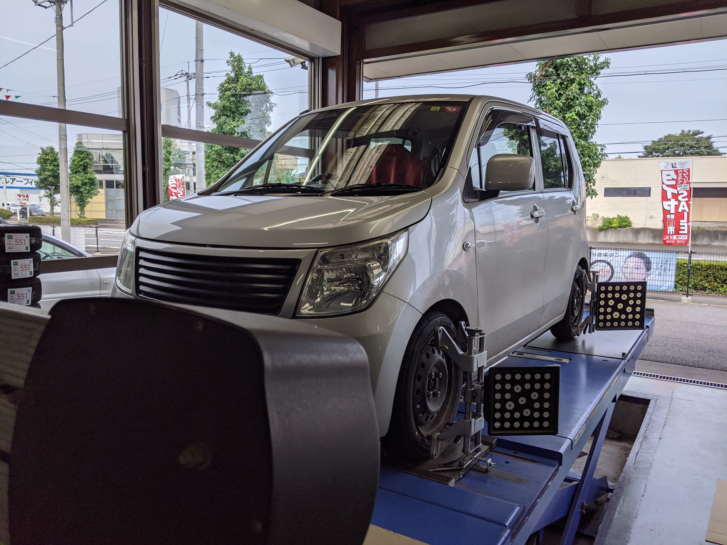 本日は、スズキ ワゴンR MH32S のタイヤ交換とアライメント調整作業をご紹介します!
