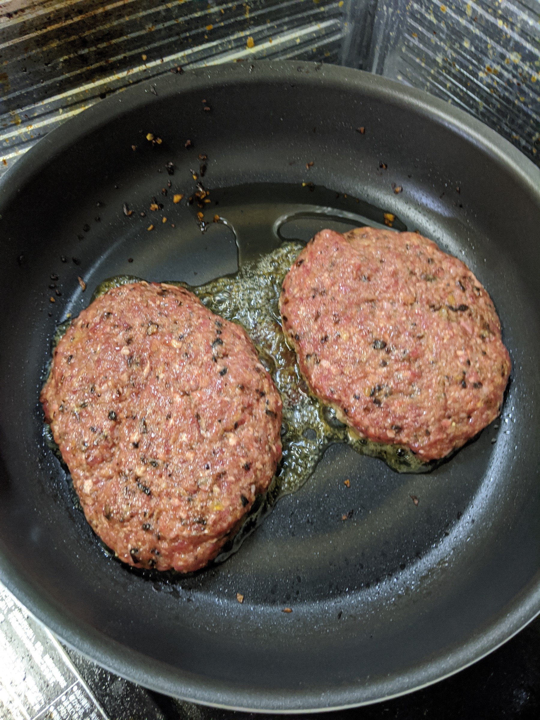 このハンバーグの種を2分割して成型し、いよいよ運命の焼き作業に入ります。