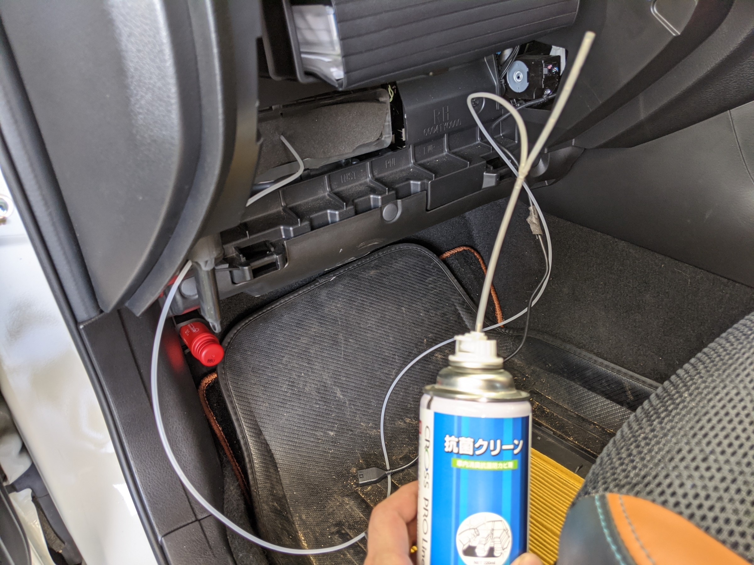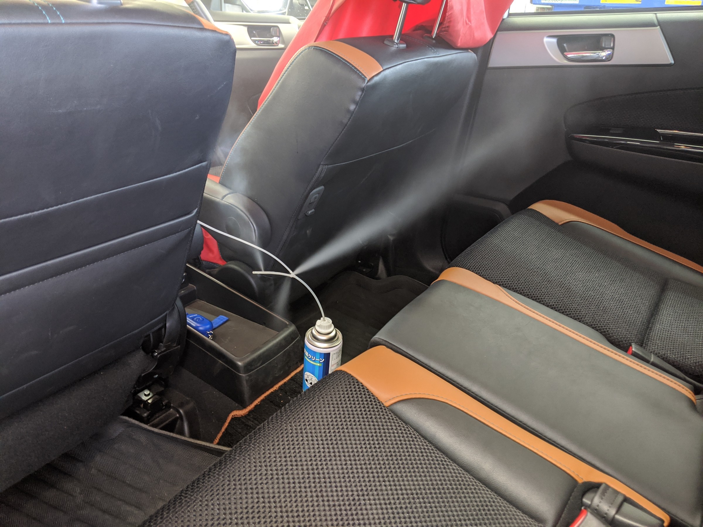 エバポレーターのみでなく、車内にも薬剤が噴射されます。