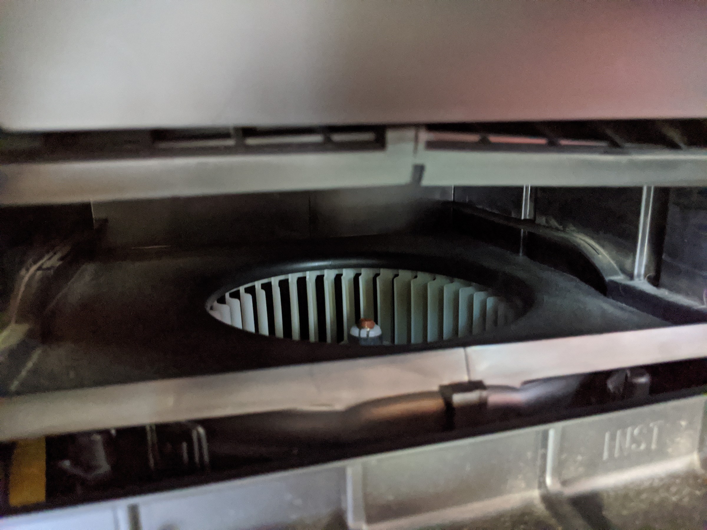 エアコンフィルターを外した奥に見えるのはブロアモーターですが、その先にエバポレーターという冷却機関があります。