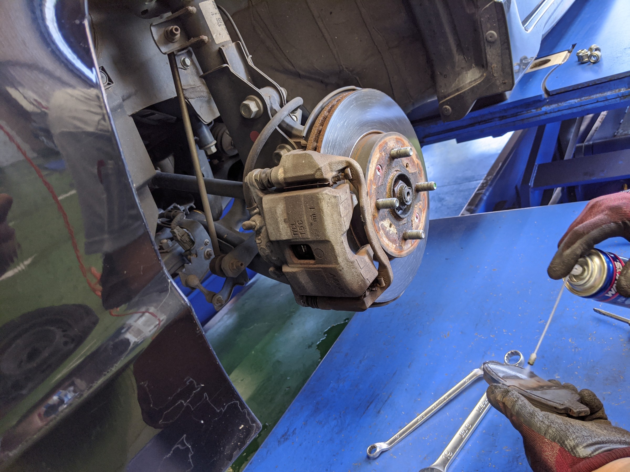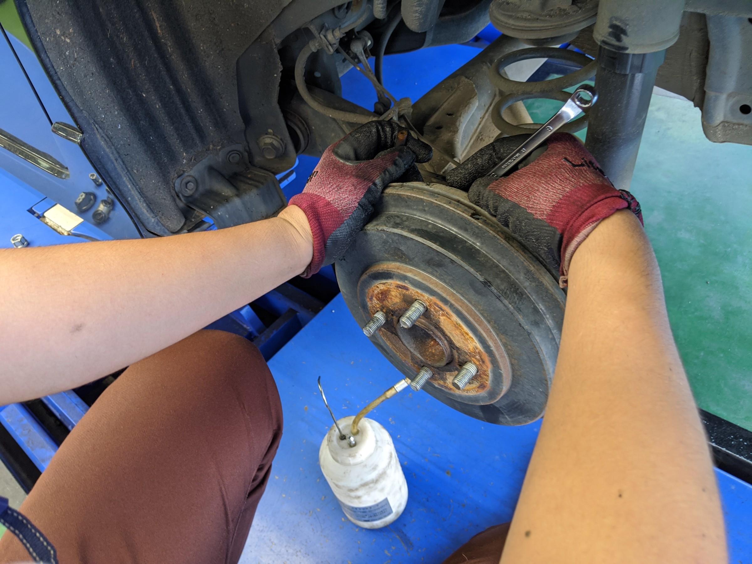 まず法定24ヶ月点検の一環として、ブレーキの分解・点検・清掃・調整を行っていきます。