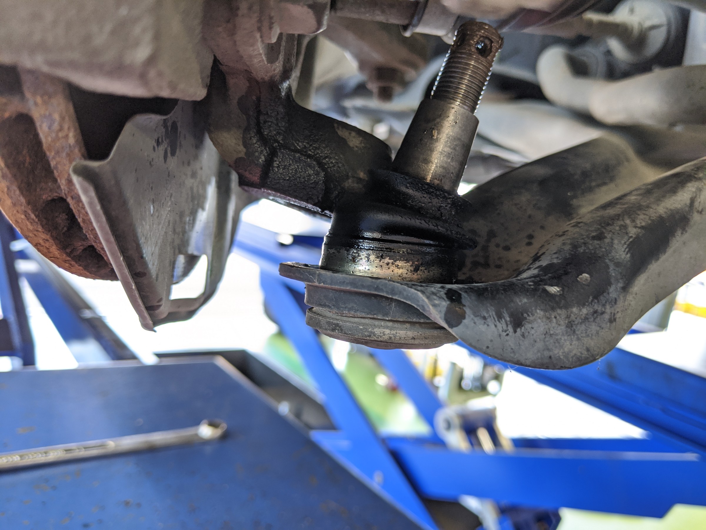 ロアボールジョイントブーツにひび割れが見られたので、新品に交換します。
