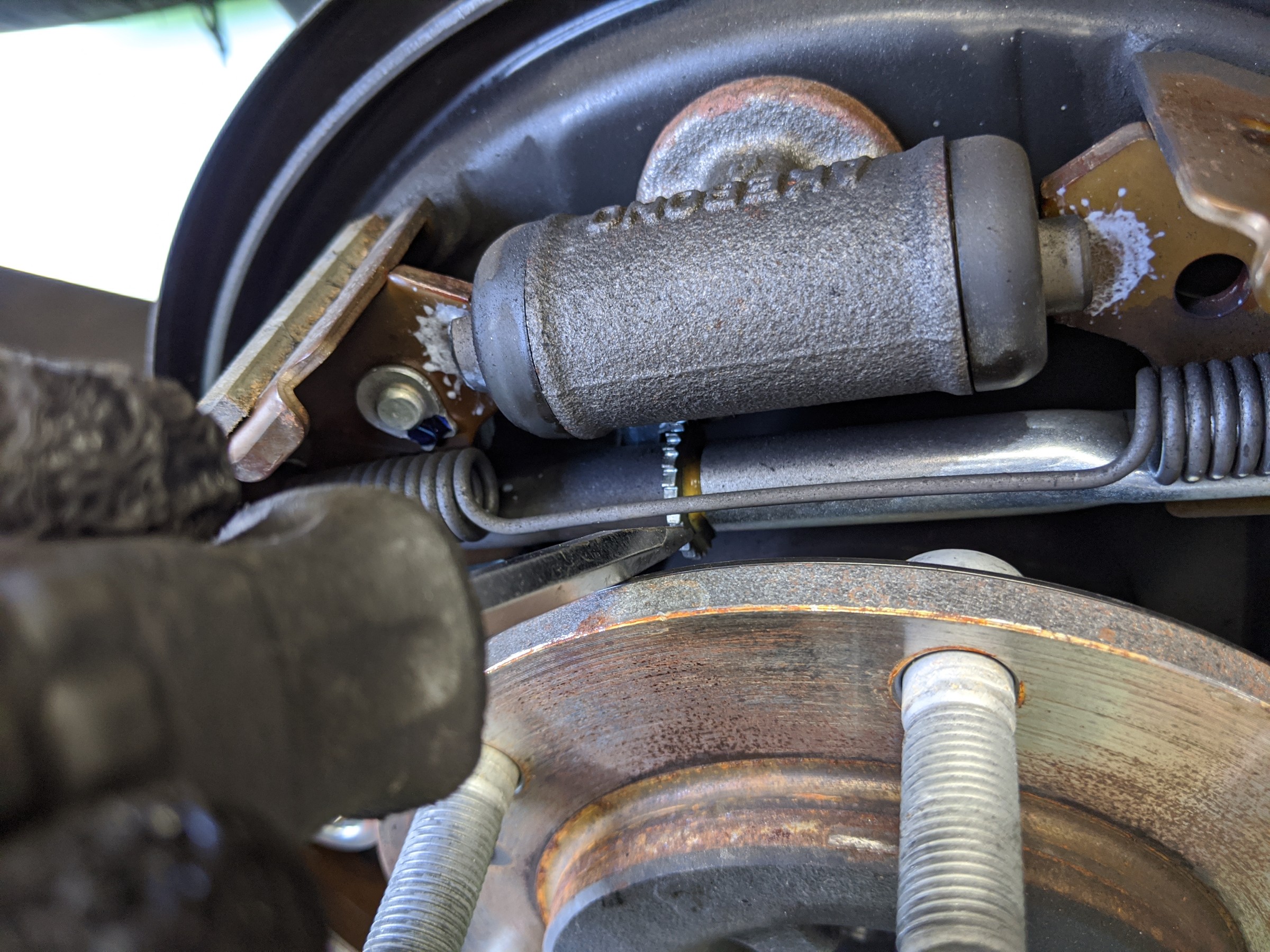 ライニングがすり減って増えた遊びを、こうして調整してあげることで後輪のブレーキやサイドブレーキがしっかりと効いてくれるようになります。