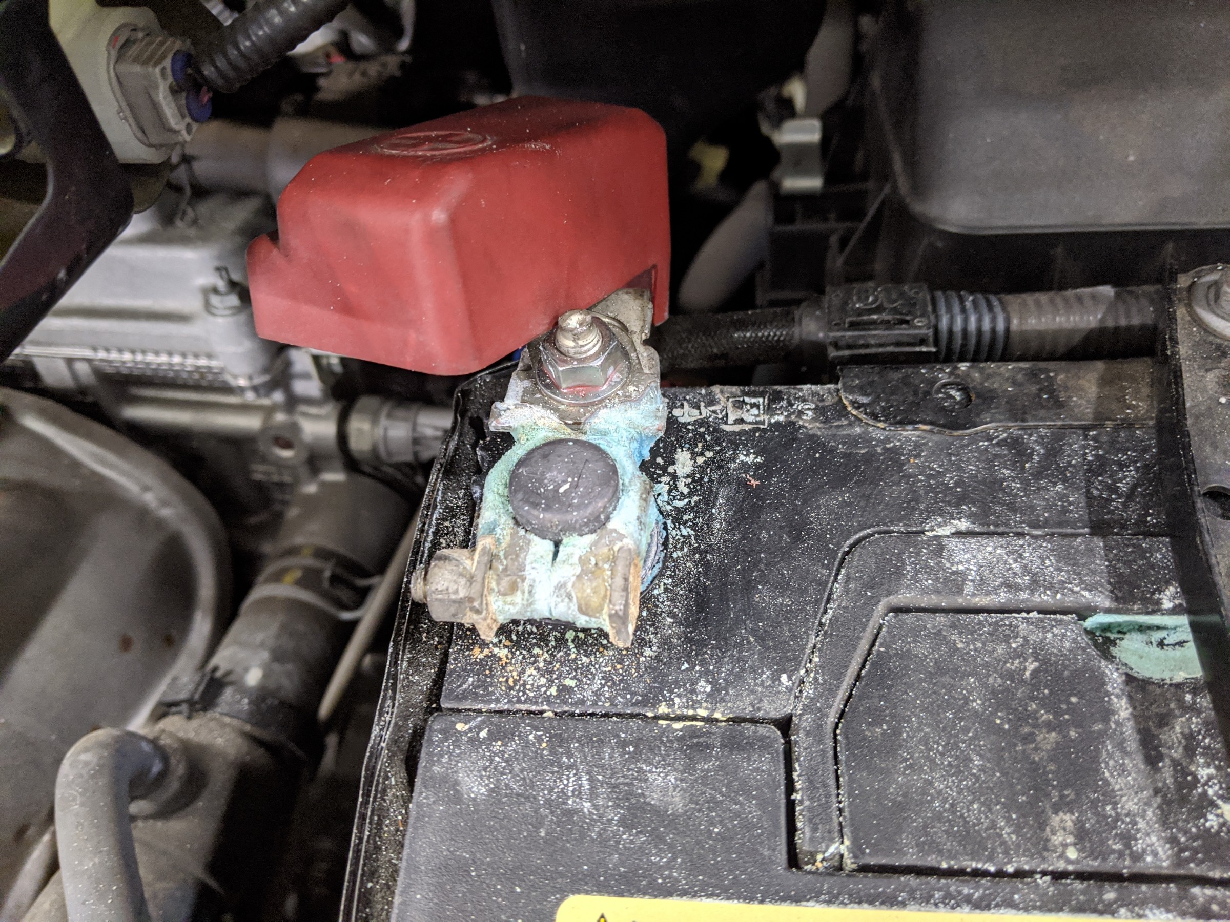 端子の取り付けに緩みがあったり、バッテリーが古くなって過充電状態になると緑青が発生しやすいようです。