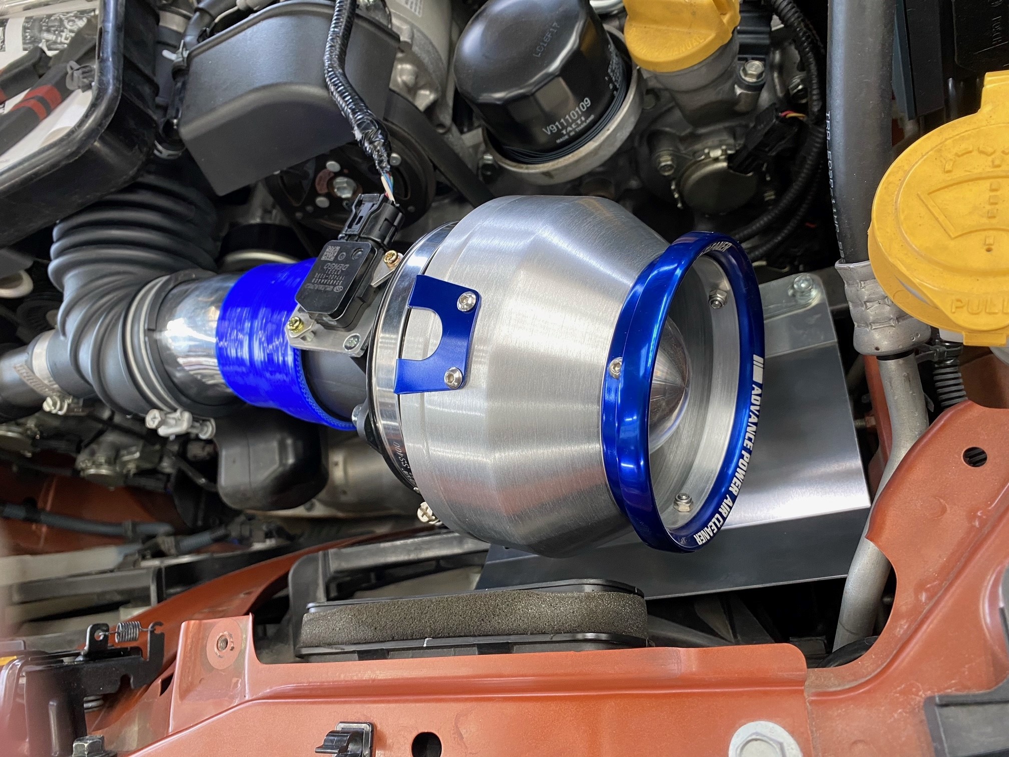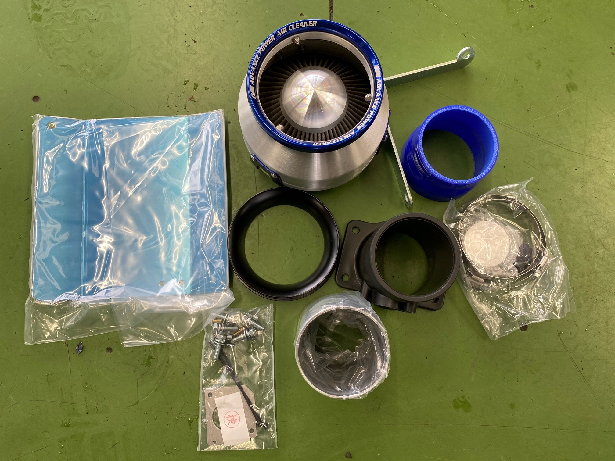 組み上げたエアクリーナーを仮付けし干渉がないか確認をしエアフロセンサーの配線を引きヒートプレート、エアクリーナーを本付けして終了です。