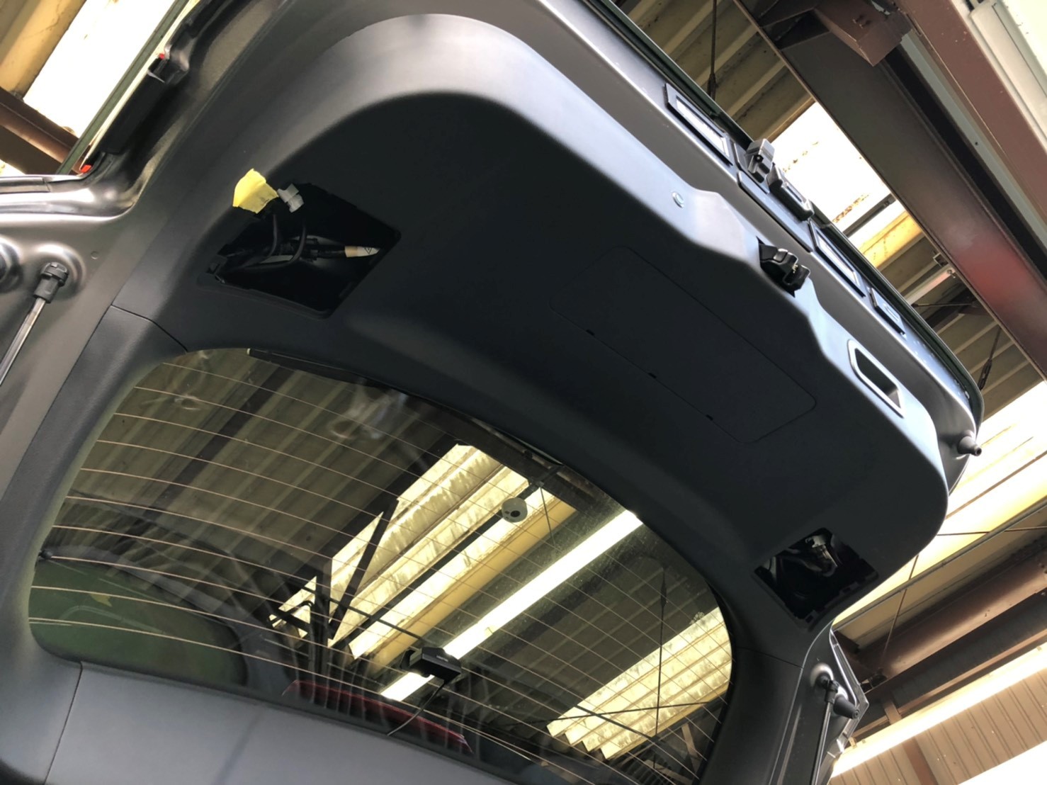 ハッチバックを開けたところの真ん中のカバーを外します。