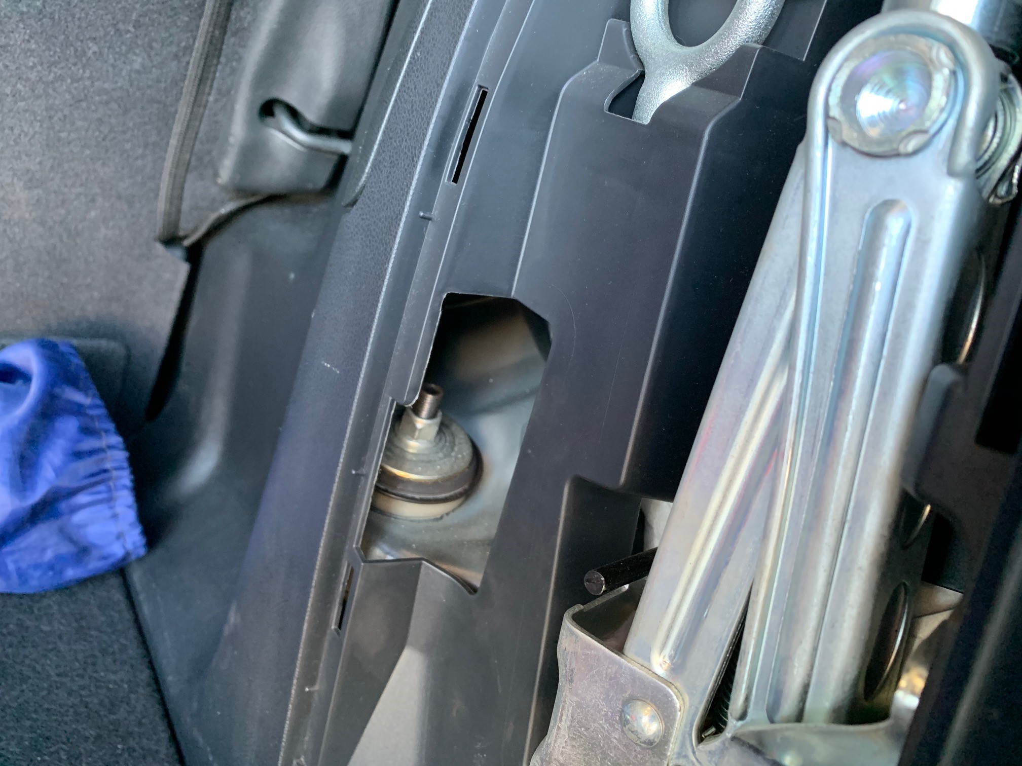 ご丁寧にジャッキの入っている所のカバーを外すとショック上のネジが出てきました