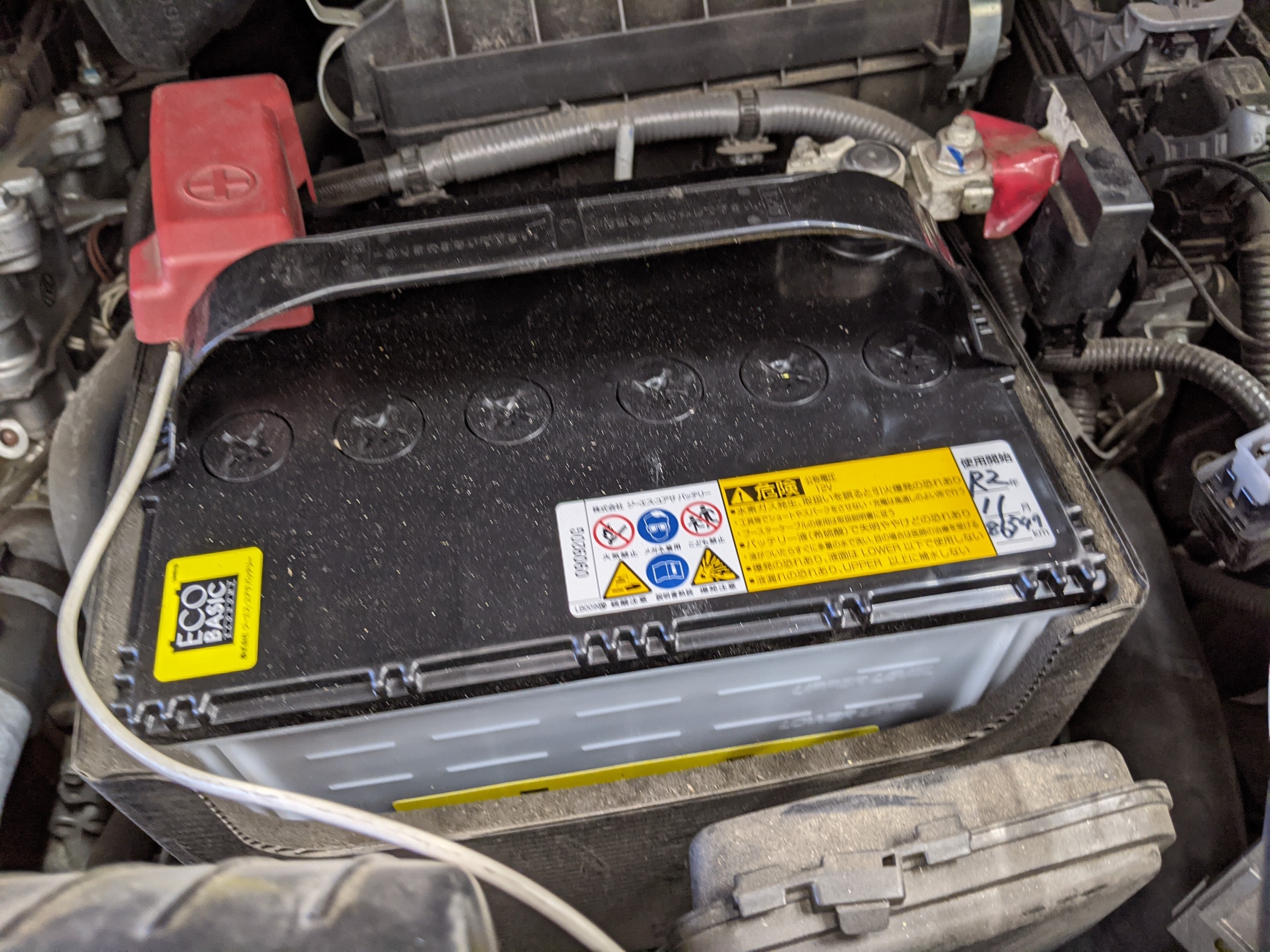 搭載されていたバッテリーと同じ、GSユアサのエコベーシックを装着しました。