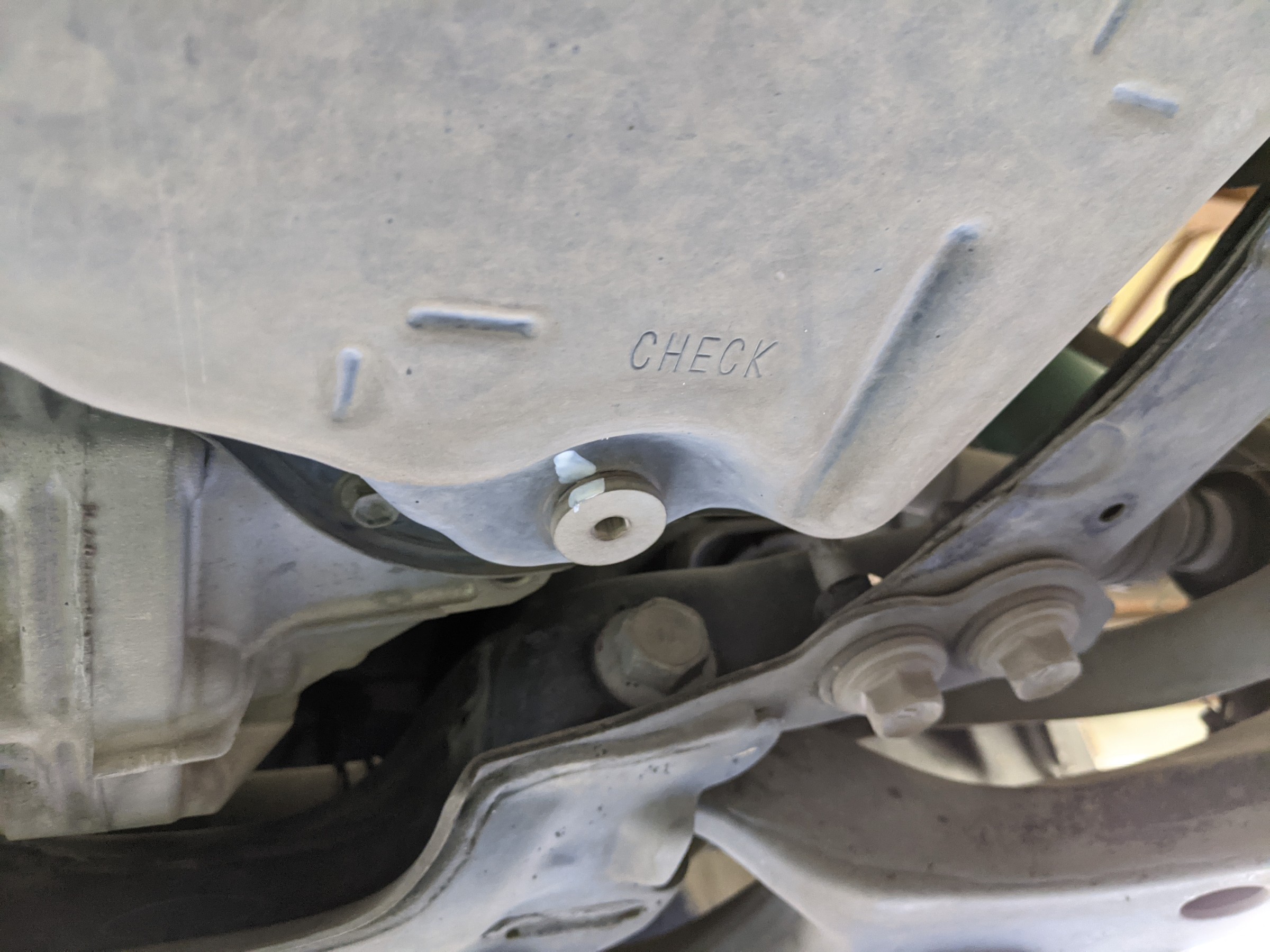 交換後は、温度管理をしつつ余剰フルードを排出、チェックボルトを締めて作業完了です。