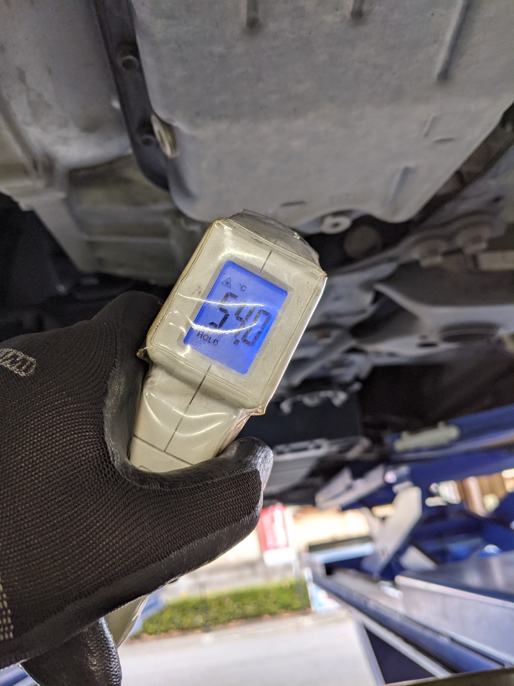 チェックボルトを抜く前に、オイルパンの温度が35〜60度以内であることを確認します。