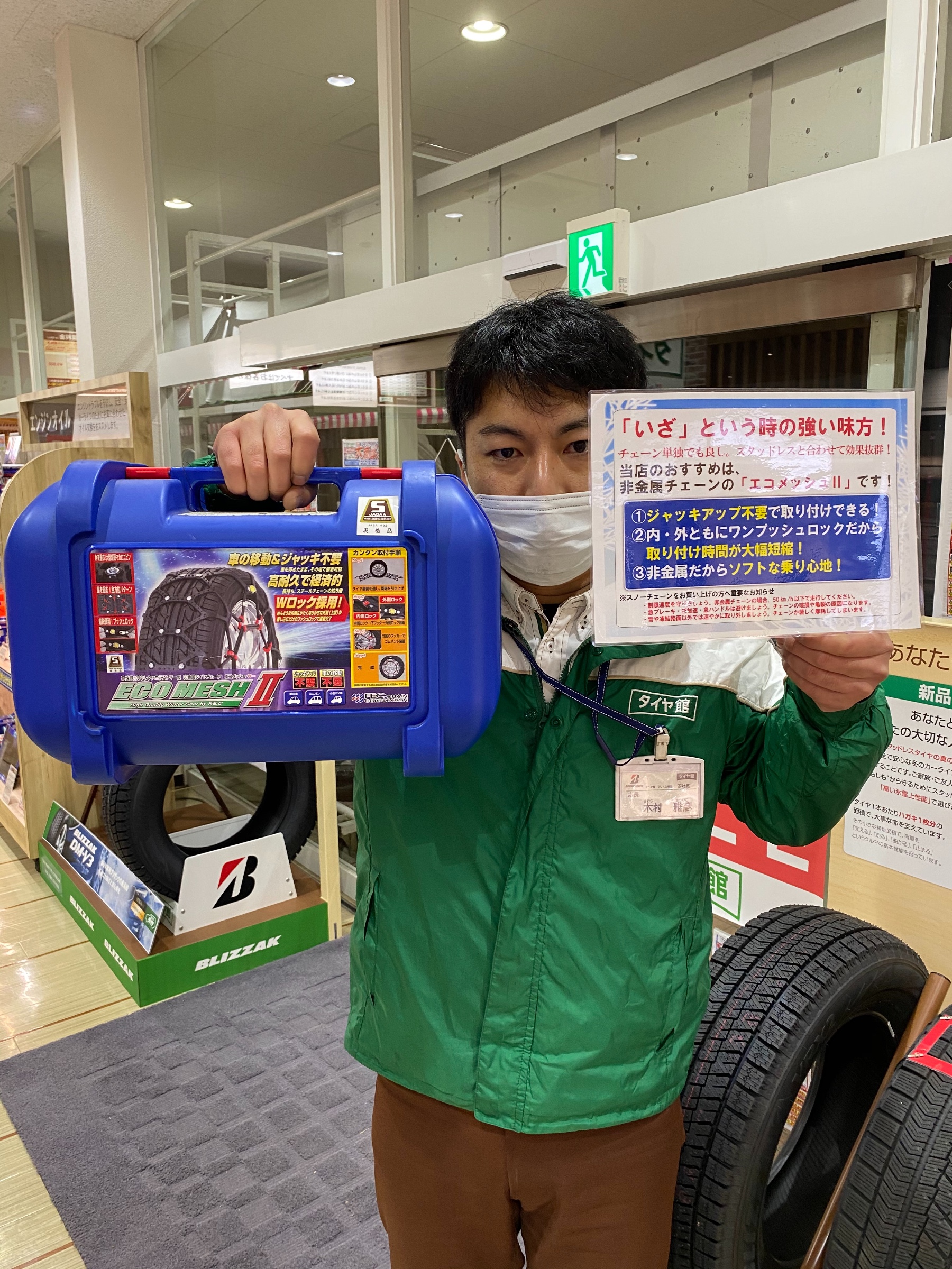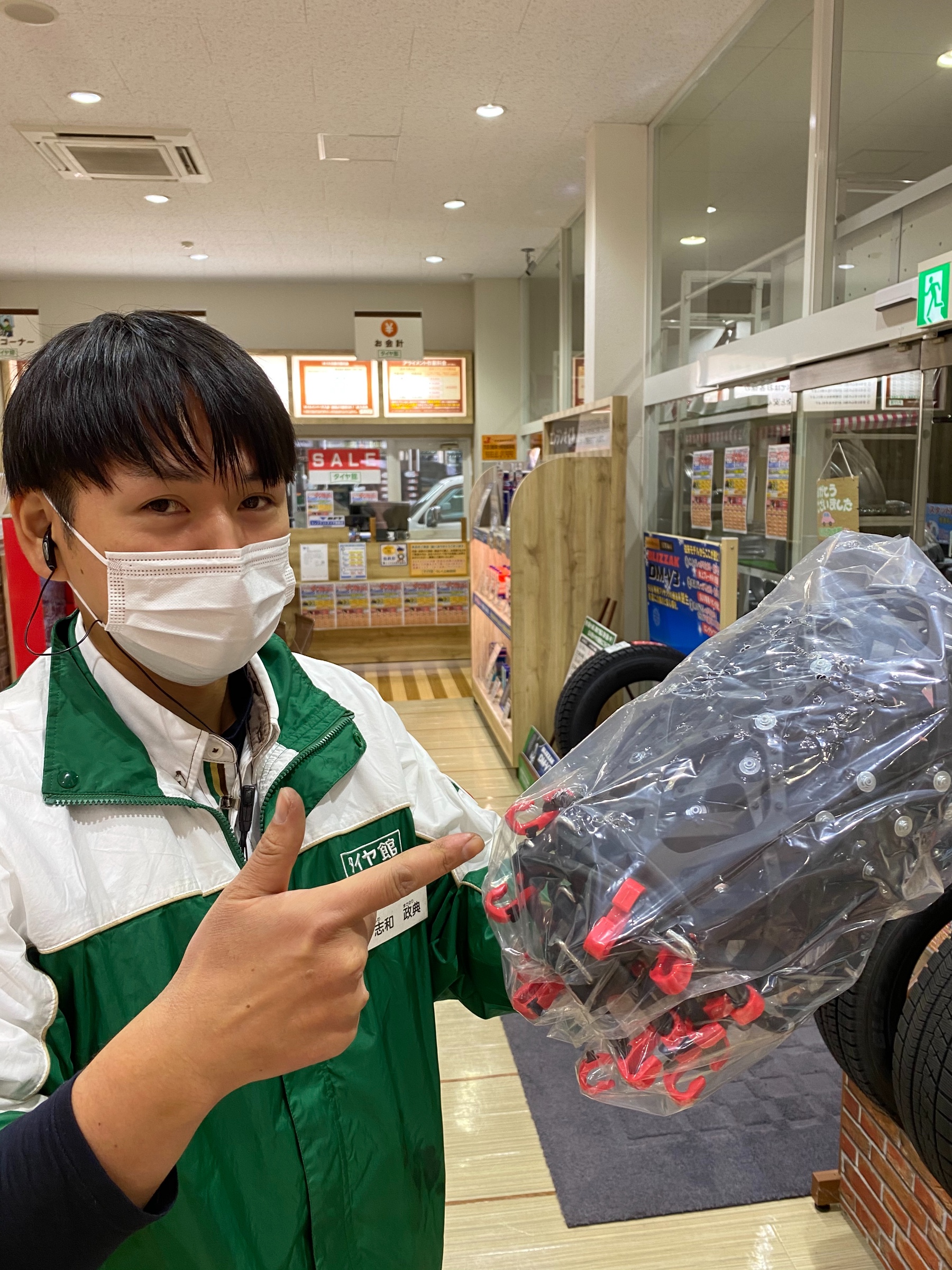 冬タイヤは持ってないけどいざ車を使うといった時チェーンが欲しいなという方の為に当店ではチェーンも取り扱ってます!