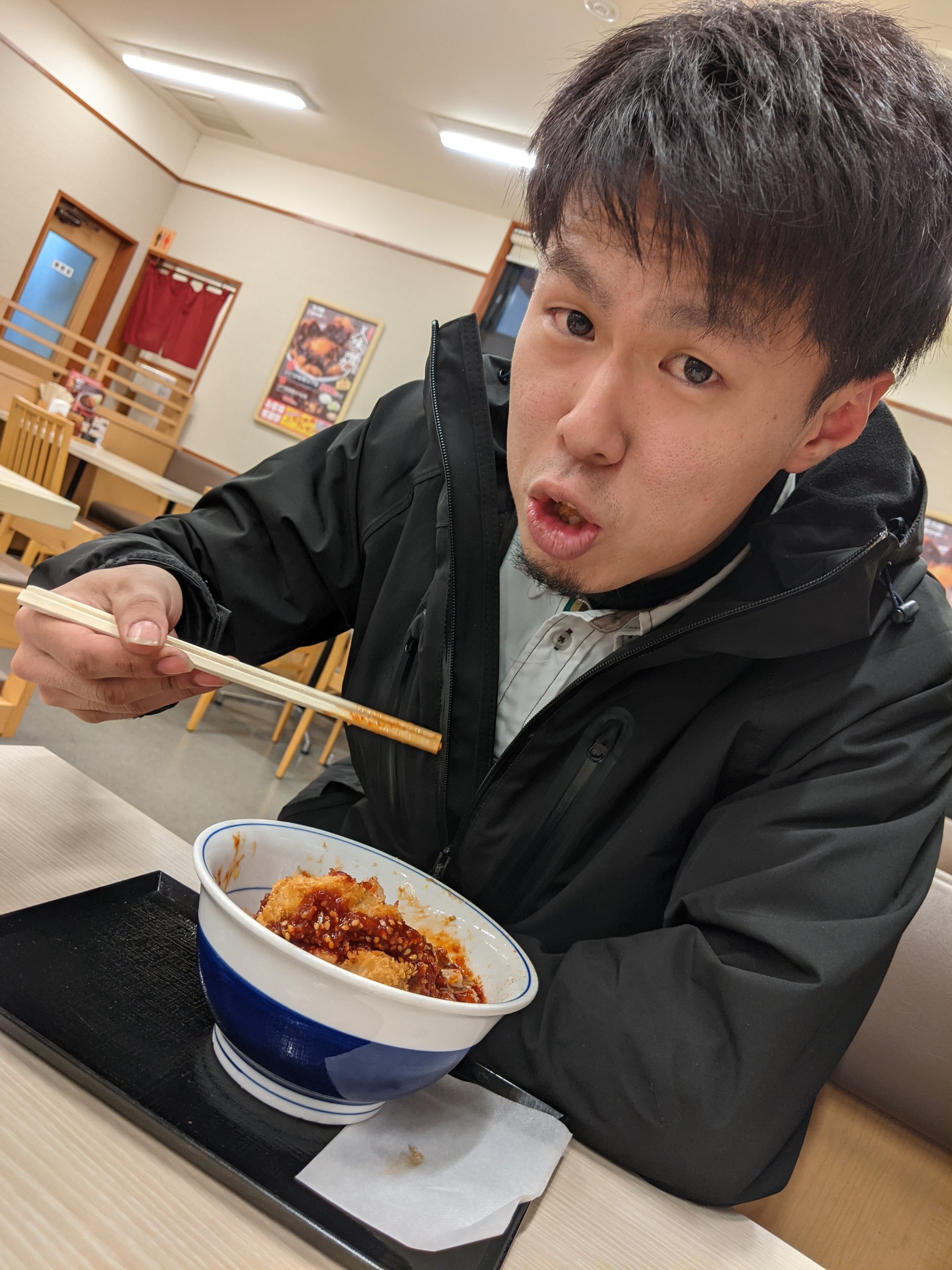 大山チーフは高確率で赤辛カツ丼を頼んでいます笑