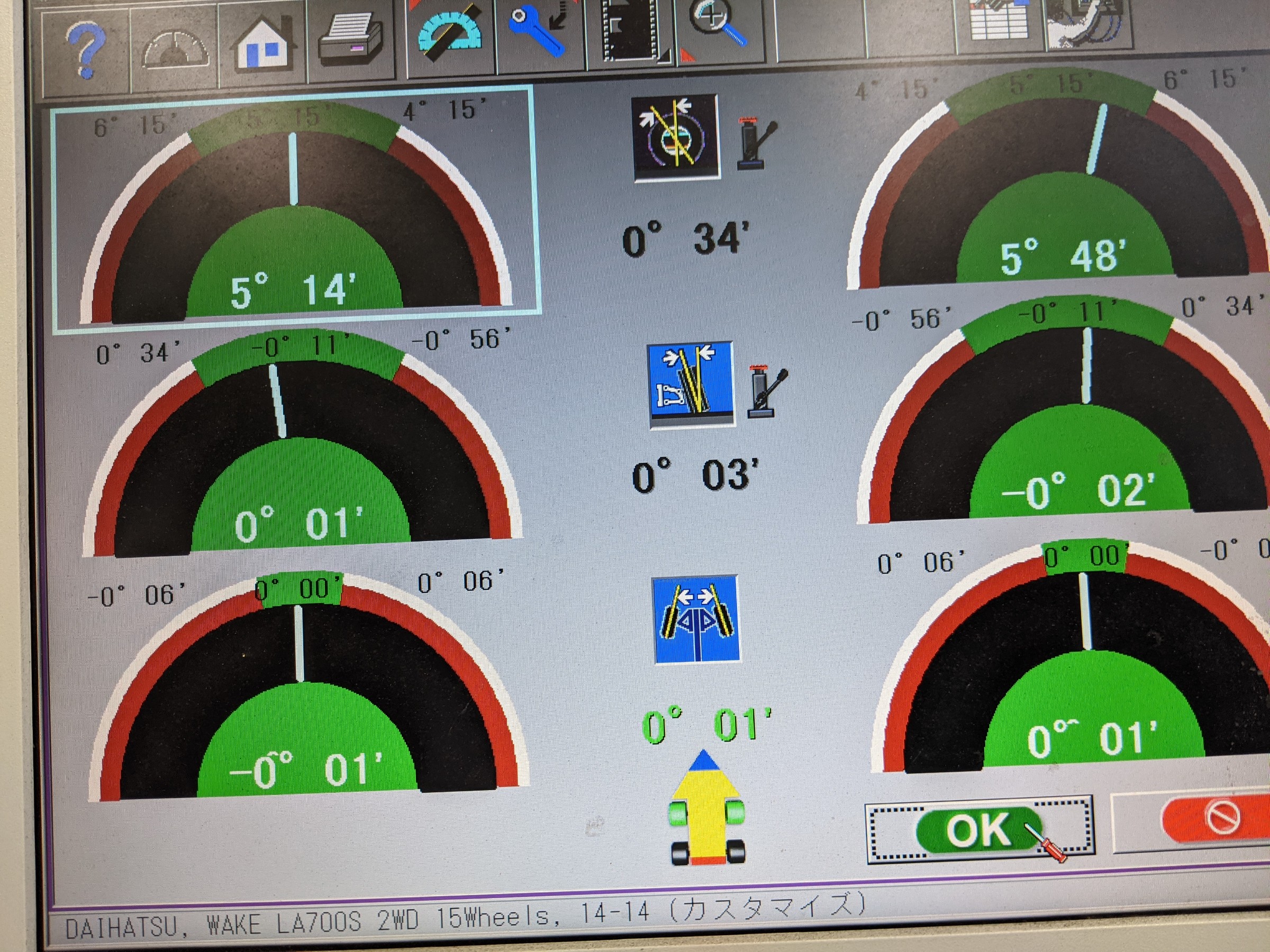 【ダイハツ・ウェイク・LA700S】スタッドレスタイヤ交換&アライメント調整
