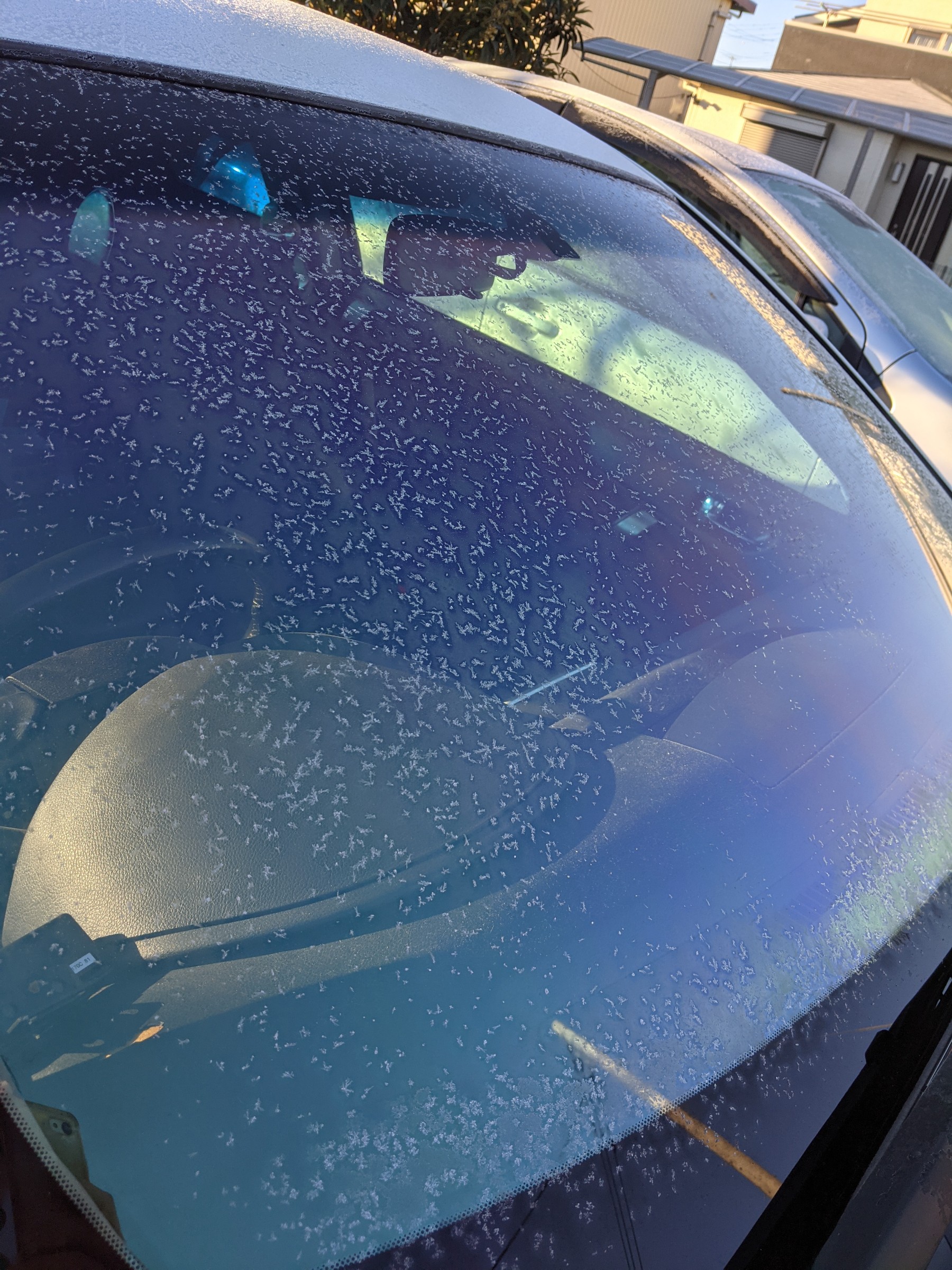 今朝、車に乗り込むと外気温計がマイナス1度を表示していました!