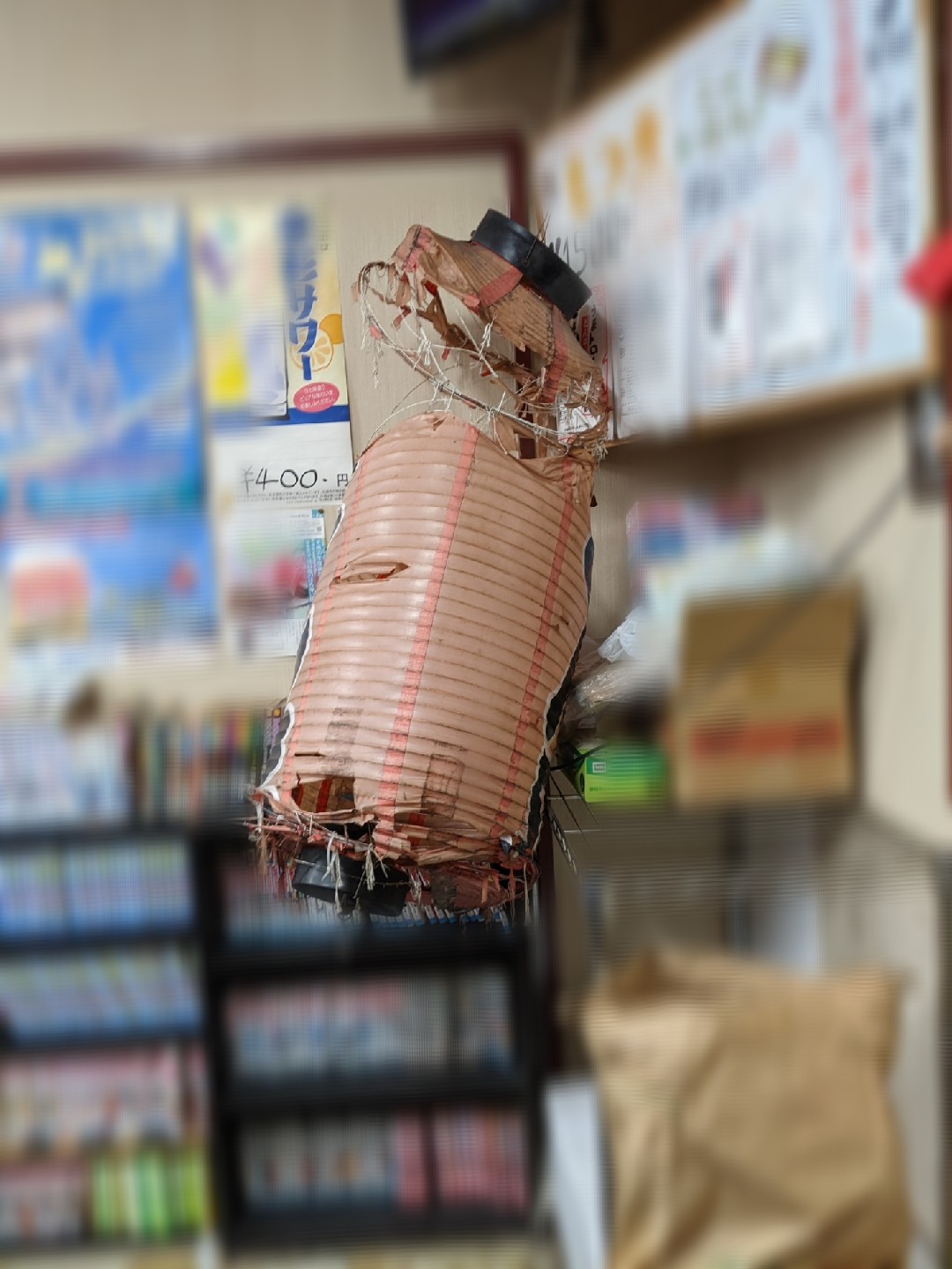 そしてその奥には何故かボロボロになった提灯が飾られていました笑