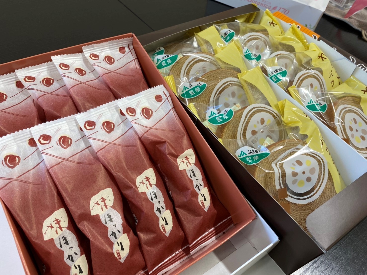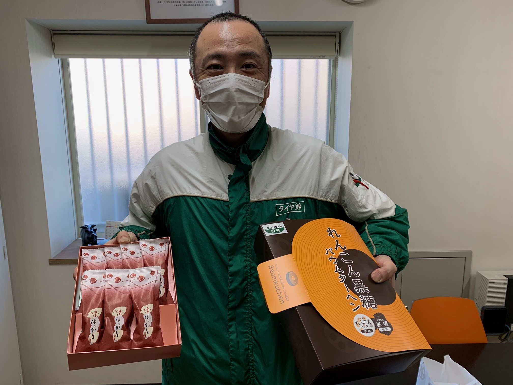 差し入れありがとうございます!! ポスト 2021年3月16日 こんにちは! 甘い物が大好きな上代です! 差し入れを頂きました!ありがとうございます! れんこん黒糖バウムクーヘンと芋ほっかりというお菓子です! 甘いものが大好きな自分にとってはとても嬉しいです! 早速スタッフ一同で頂きました! こういった差し入れはとても嬉しいです! 差し入れ頂いて元気もいっぱいです! 元気いっぱいでご来店お待ちしております! 担当:上代