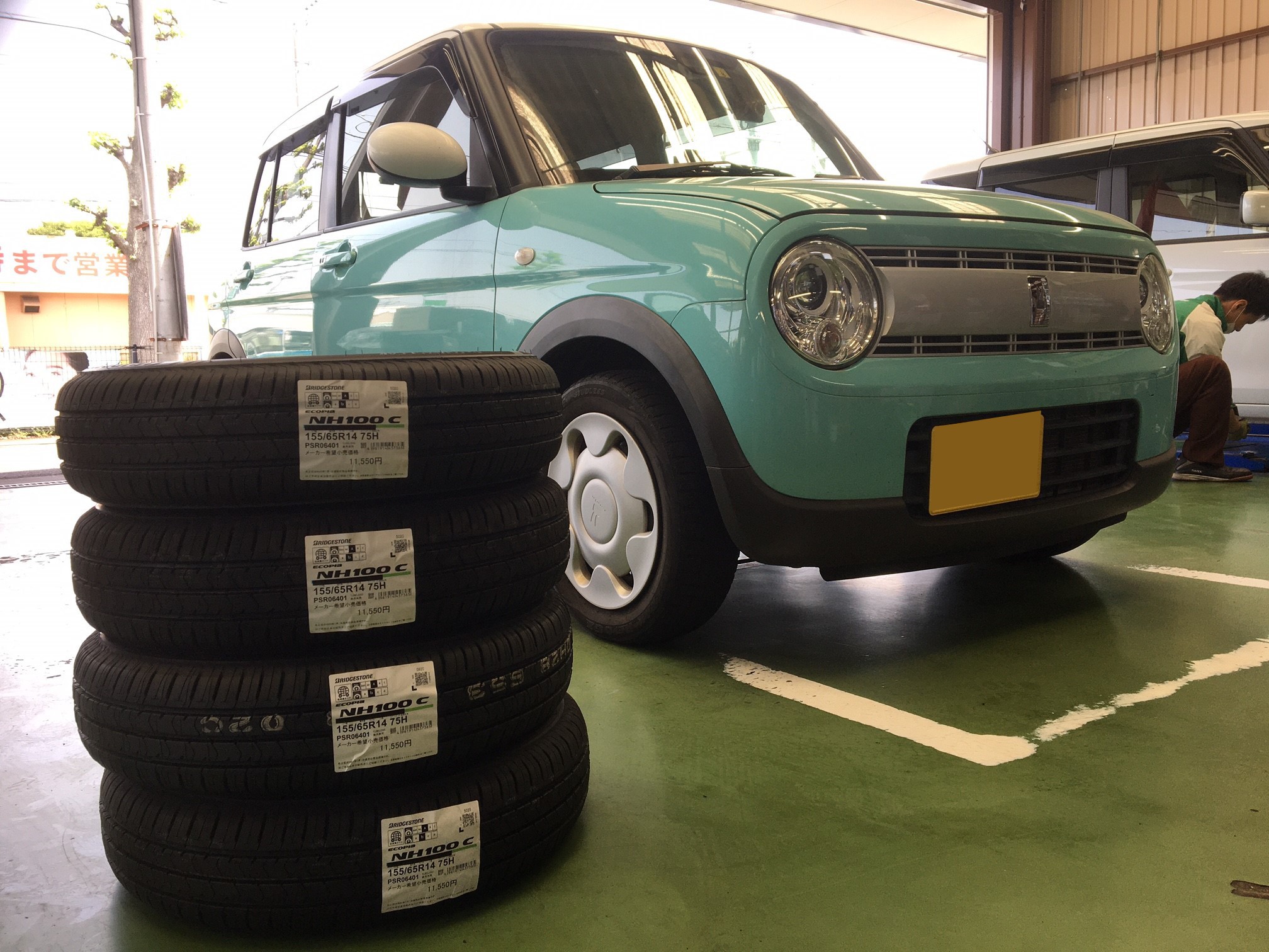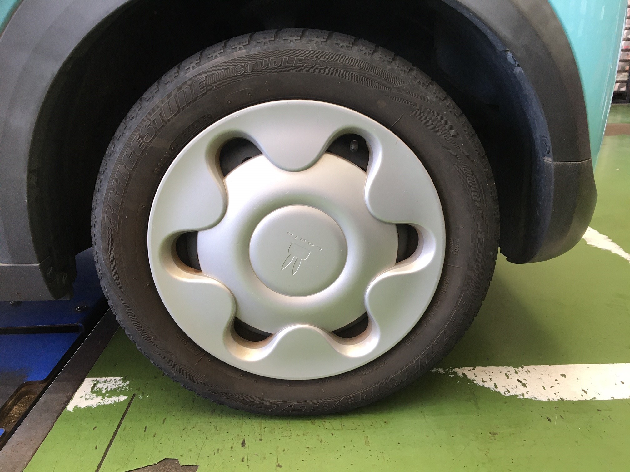 本日は、スズキ・ラパン・HE33Sの、タイヤ交換をご紹介します!