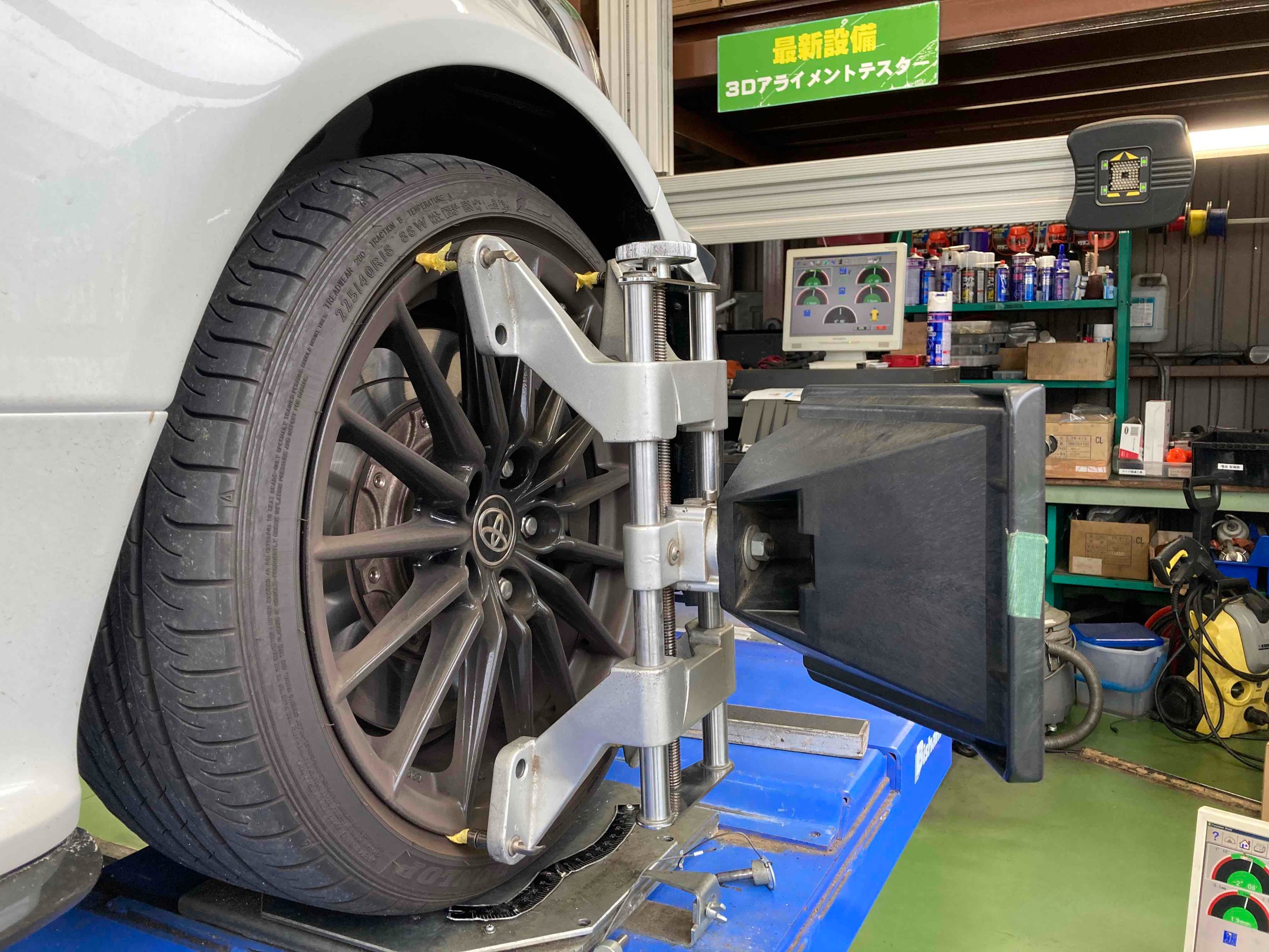 当店では、タイヤ交換や足回り交換を行ったら、タイヤの角度見直し「アライメント調整」をお勧めしています。