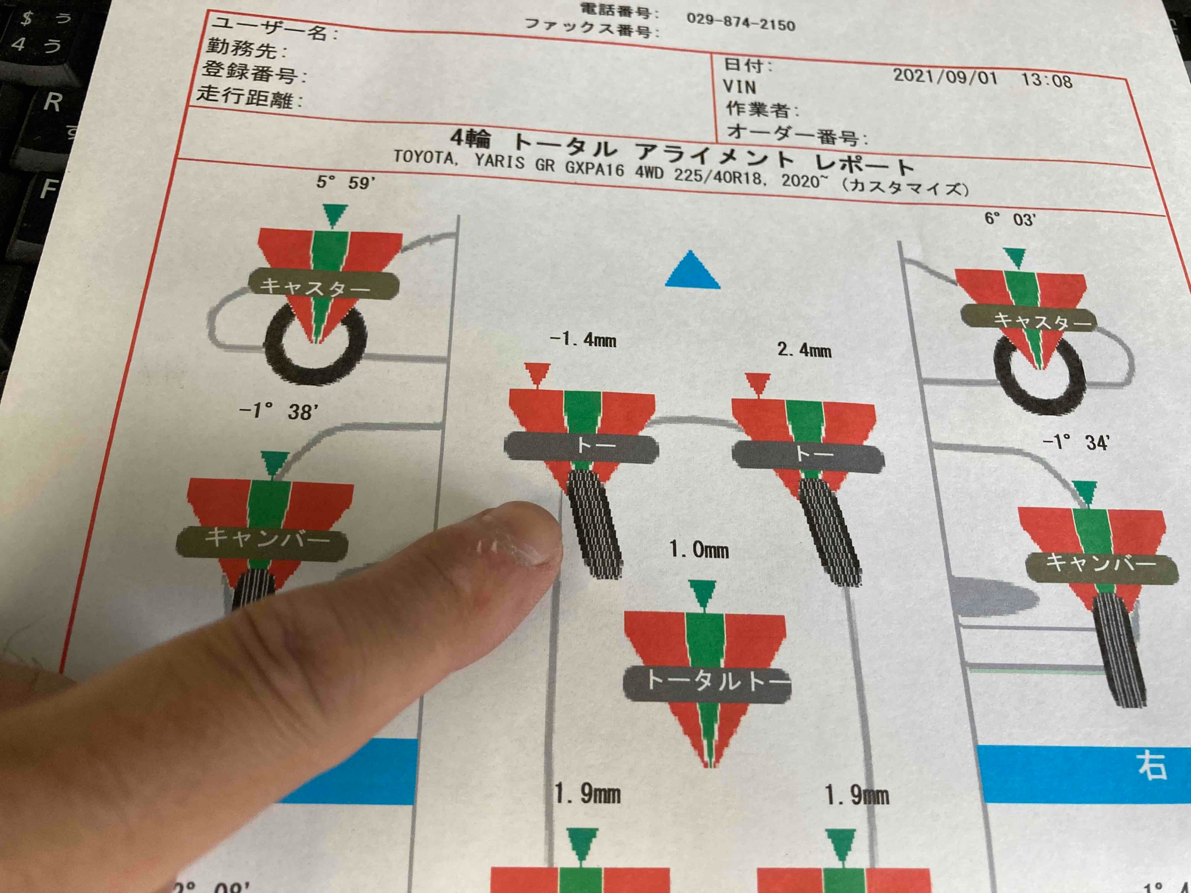 こちらのGRヤリスは、前後のトゥ角が調整可能です。