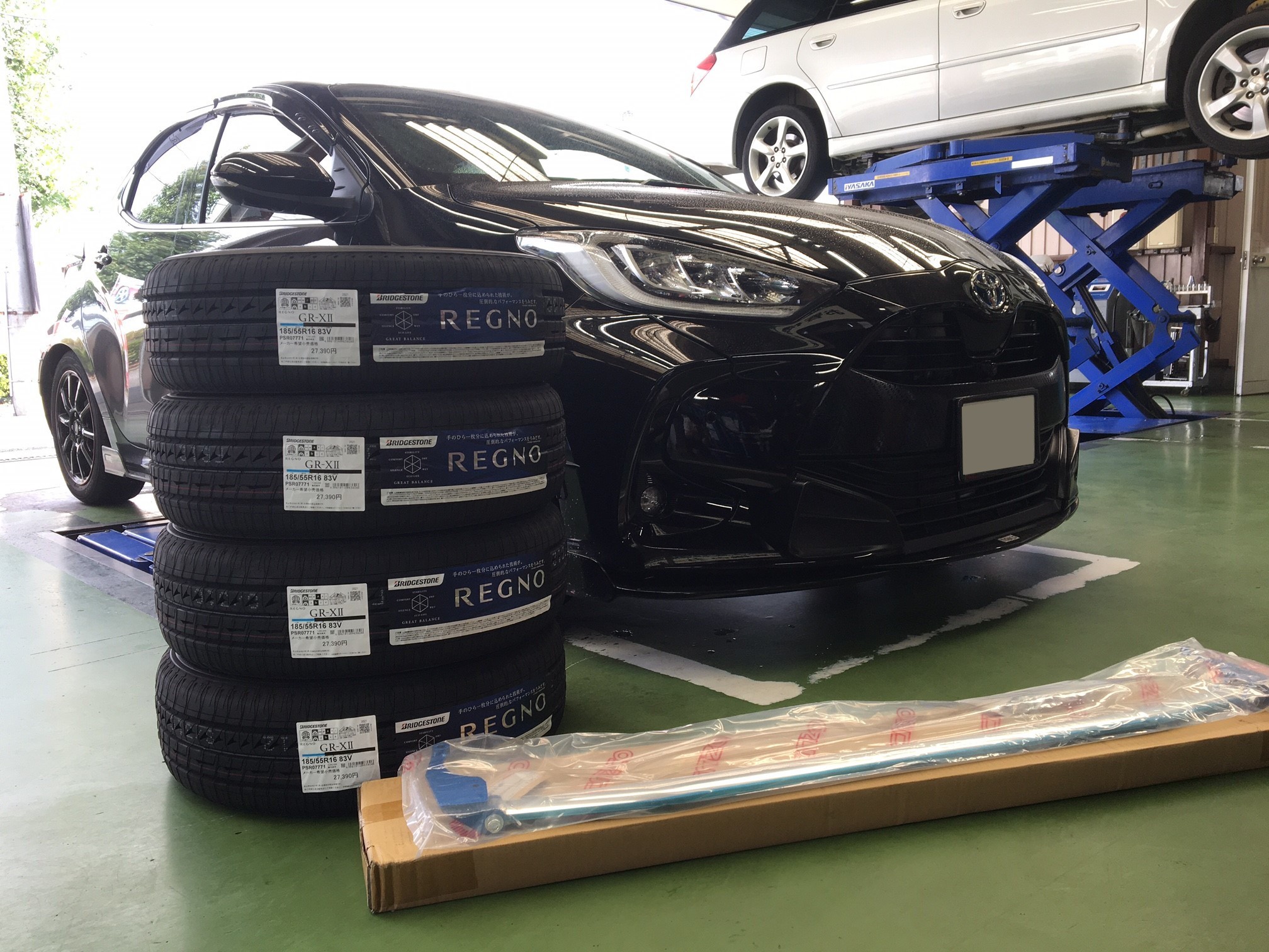 今回はトヨタ・ヤリス・MXPH10のタイヤ交換とストラットバー取り付けをさせて頂きました!