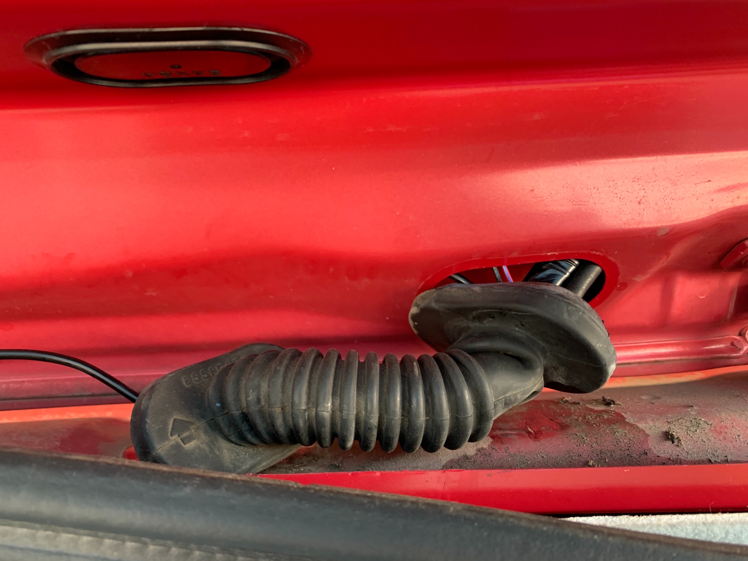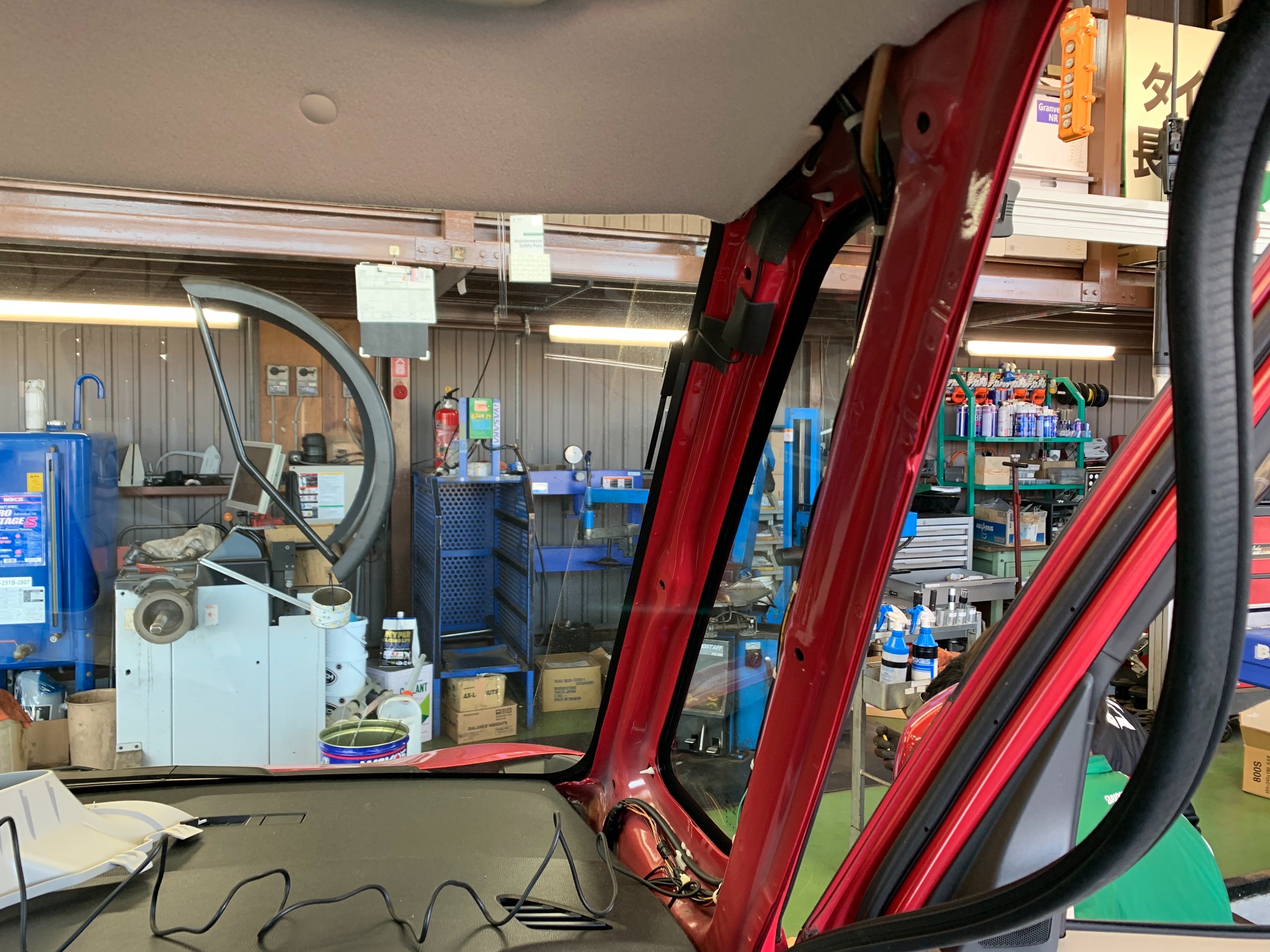 ジャバラのところにリアカメラ用の配線を通していきます。