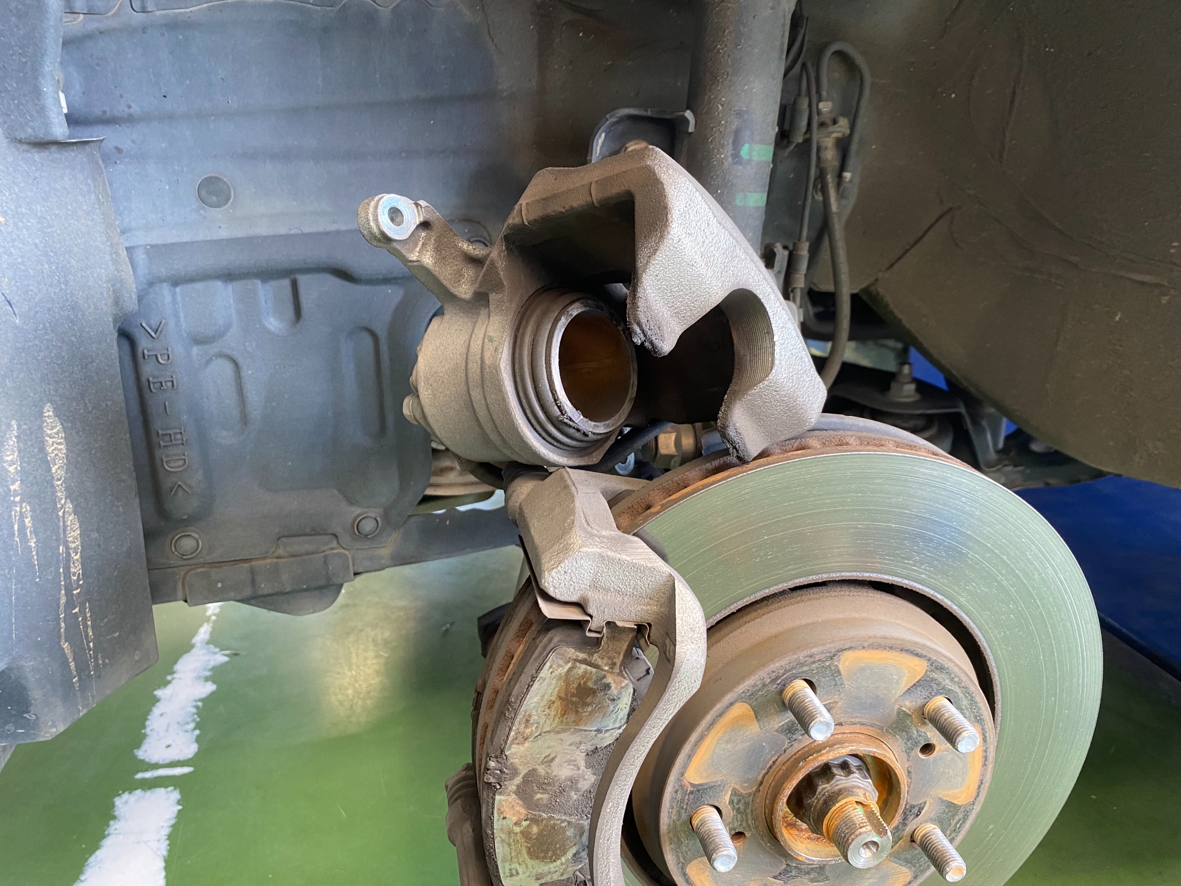 最後にキャリパーの土台のネジを2つ外せばローターが外れます。