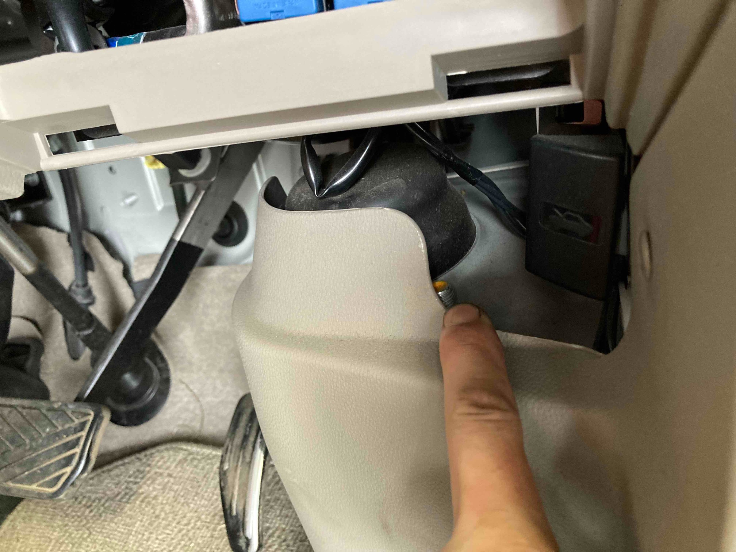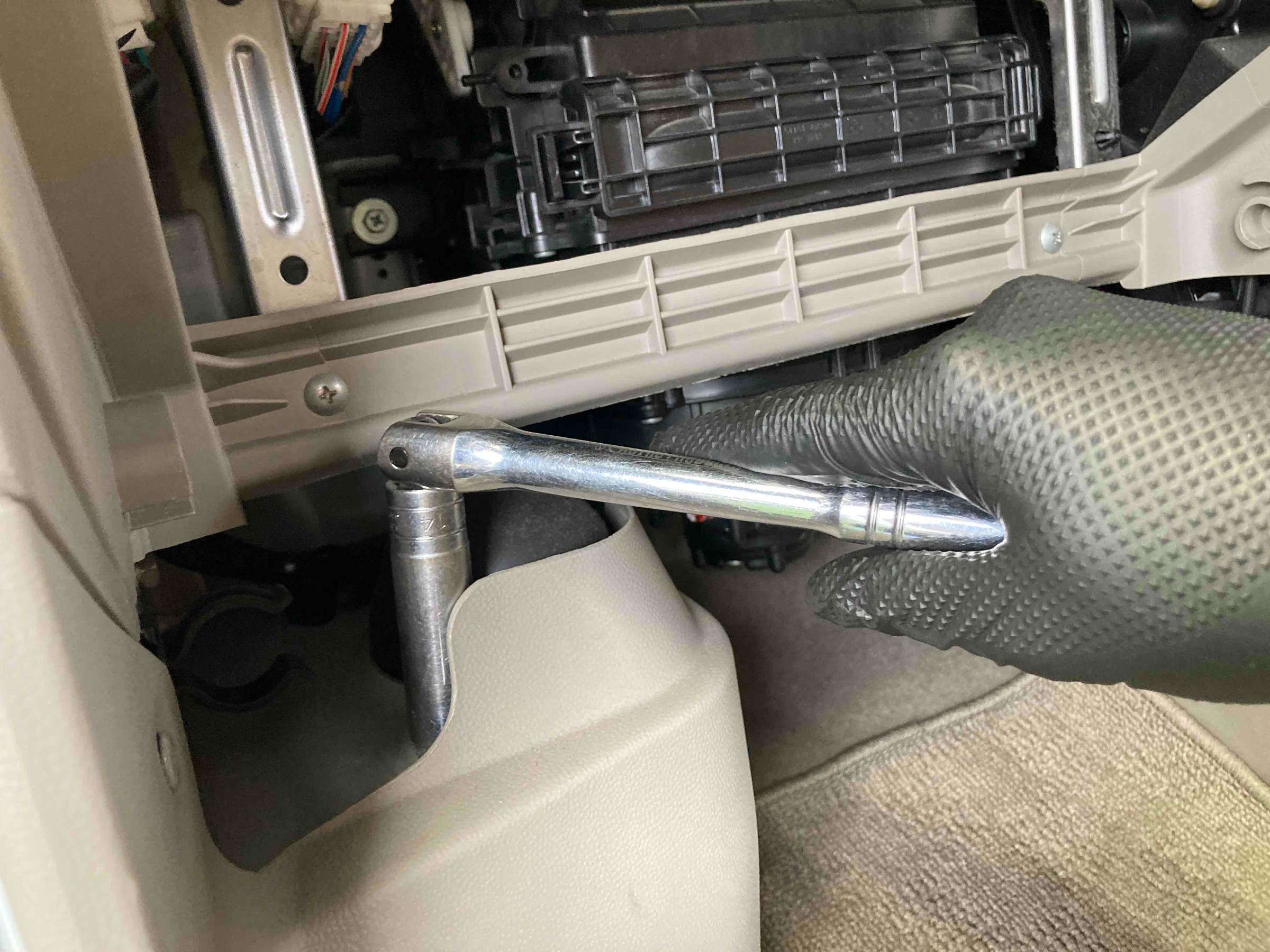 アッパーマウントを止めるネジは、それぞれ運転席・助手席足元にありますが、助手席側はグローブボックスを外せばアクセスできます。