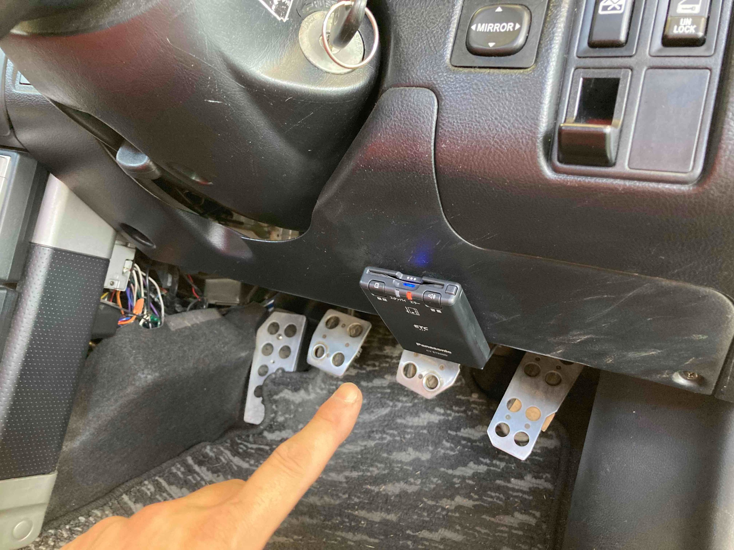 ETC本体は、ステアリング右下のパネルのスペースに設置しました↓