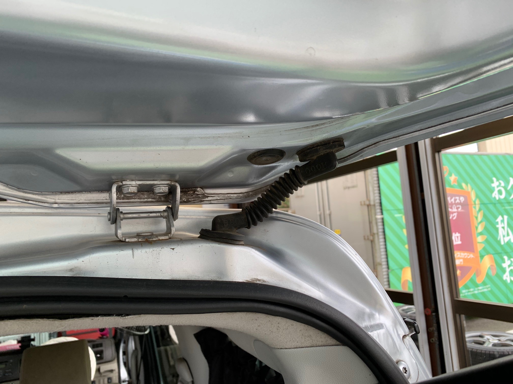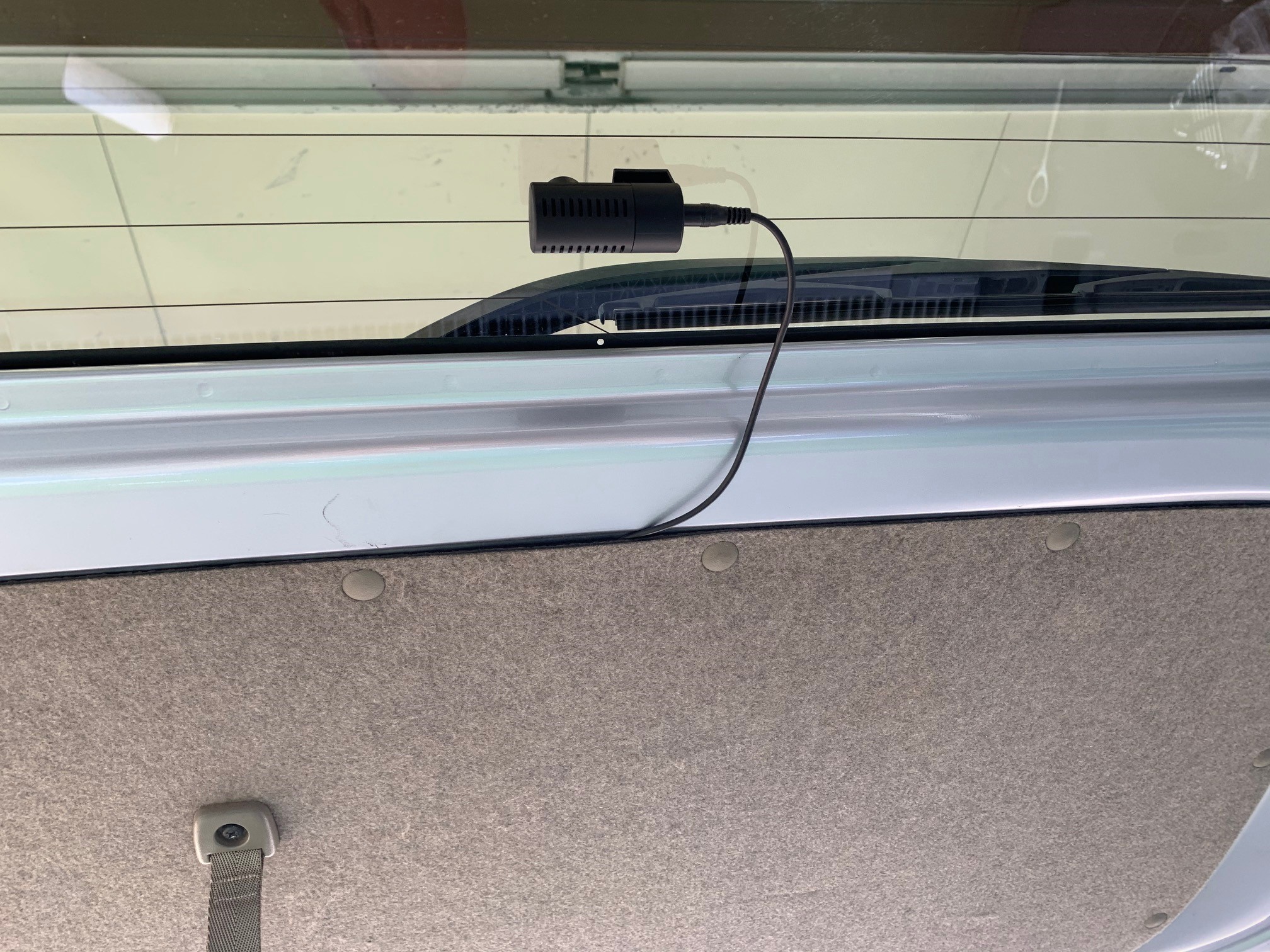 こちらの蛇腹のゴムの所から配線をトランク側に通していきリアガラスにカメラを取り付けていきます。