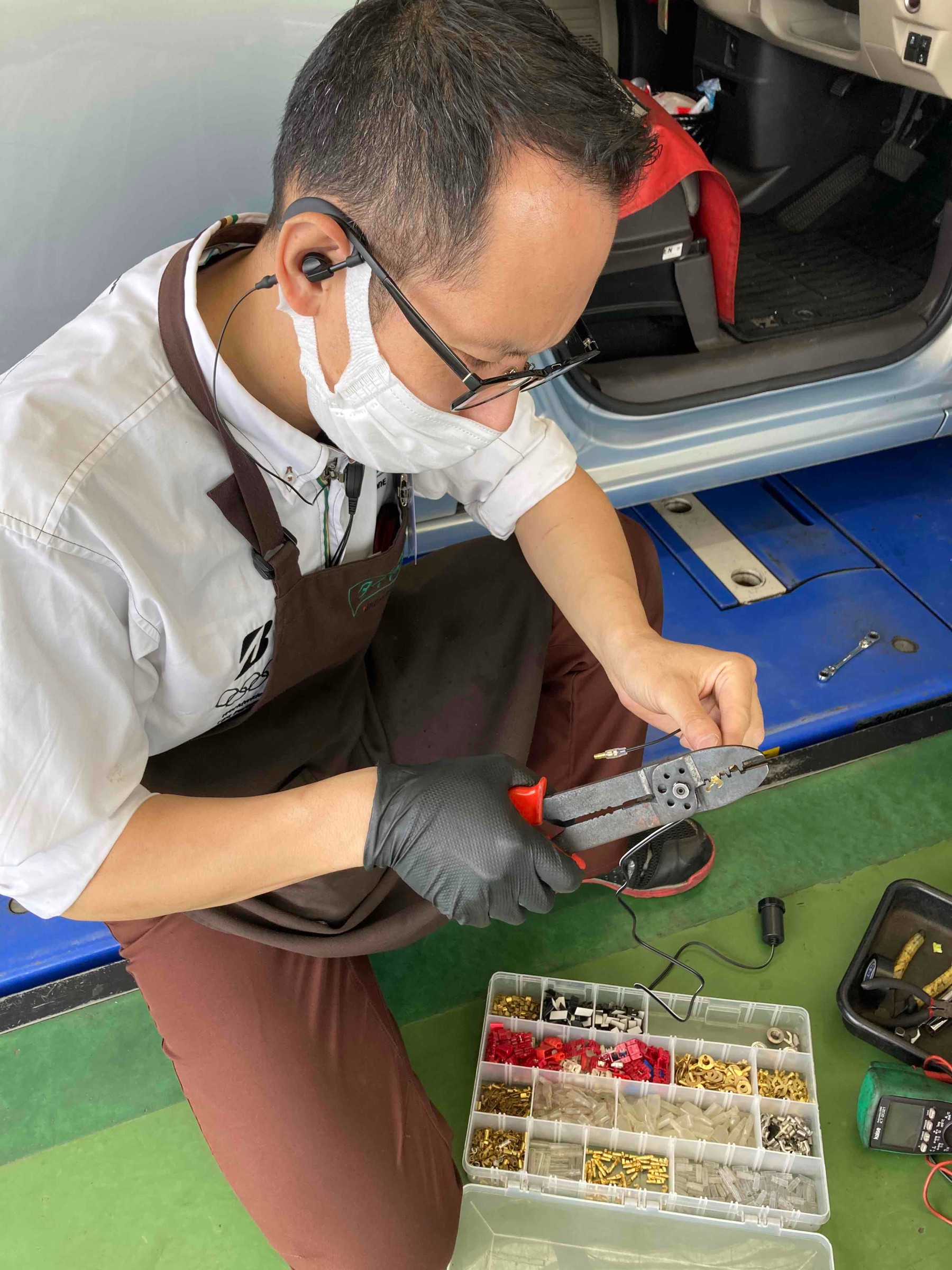 ギボシ端子のカシメなど、当たり前の作業をちゃんとやらないと後々動作不良などにつながりますので、丁寧な作業を心掛けています。