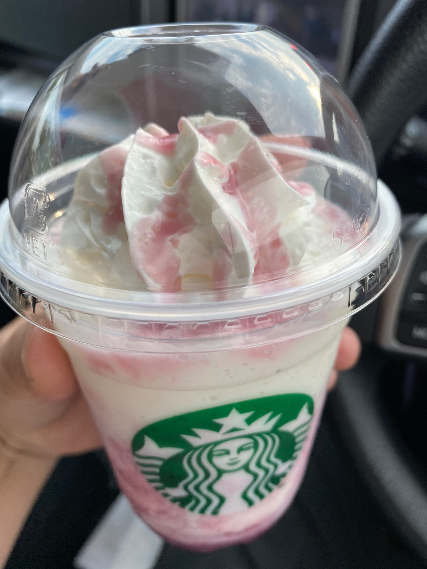 先日スタバの新作の山梨 ててっ!! ぶどう ホワイトチョコレートクリームフラペチーノを飲んできました)^o^(