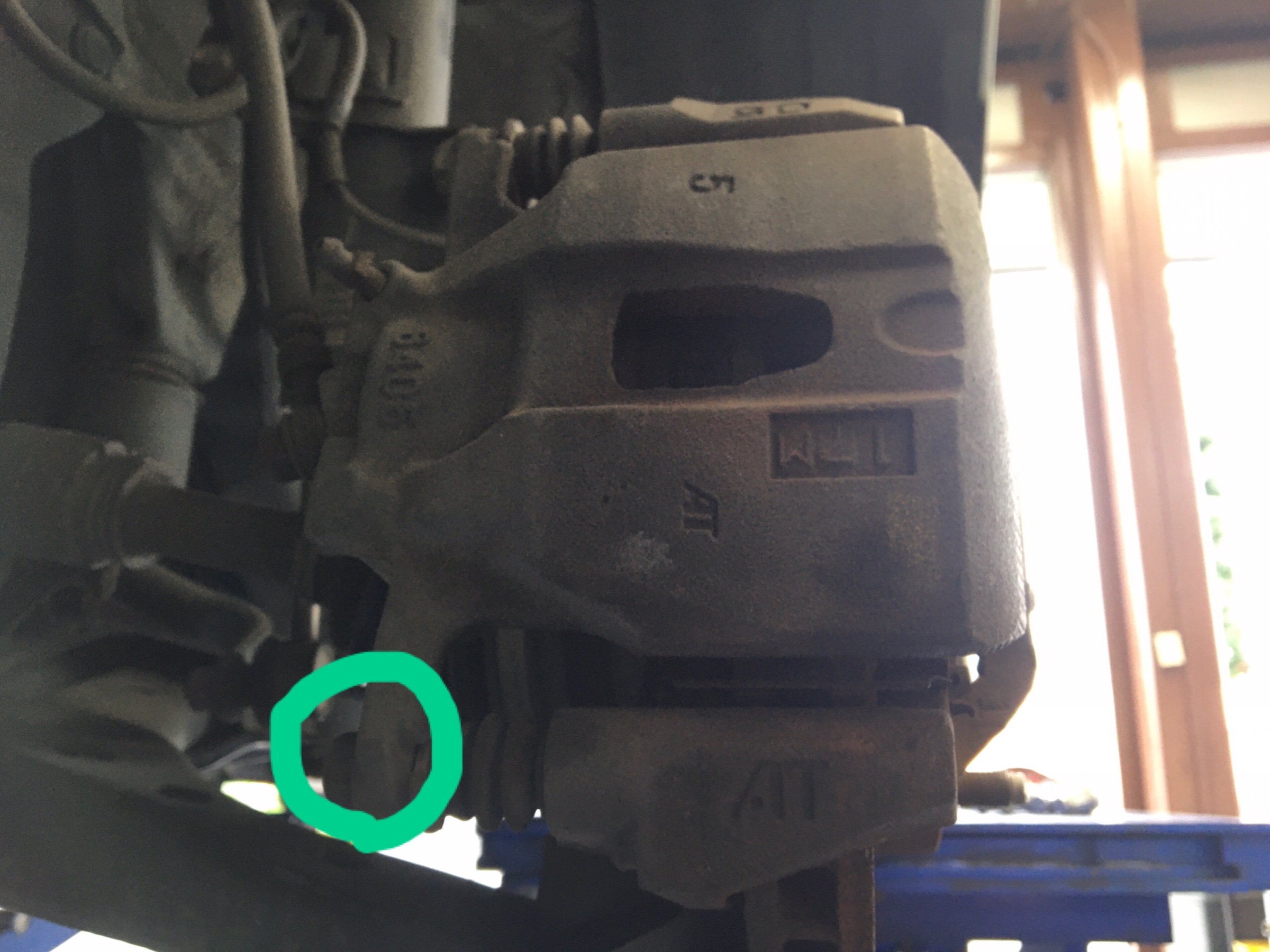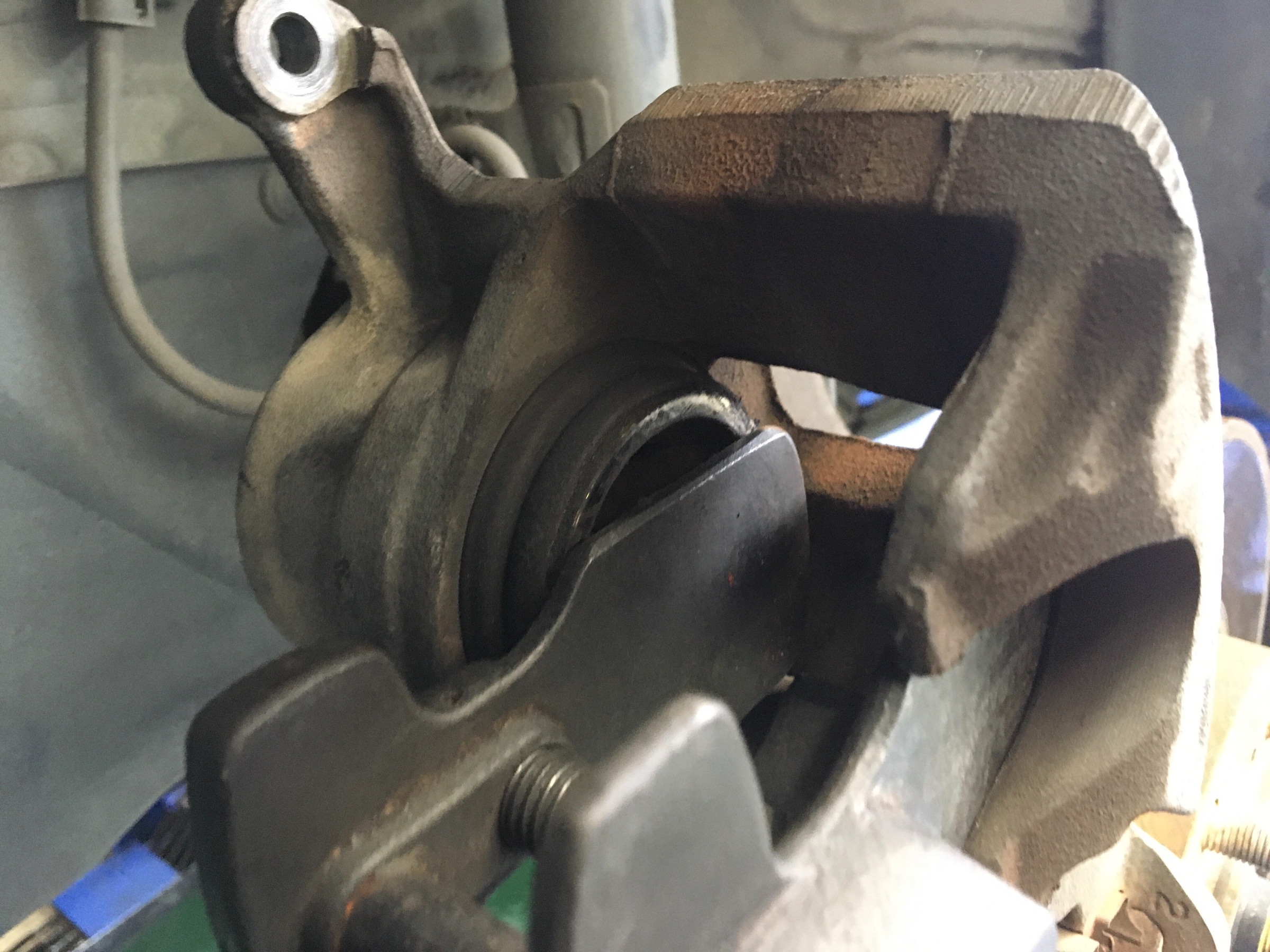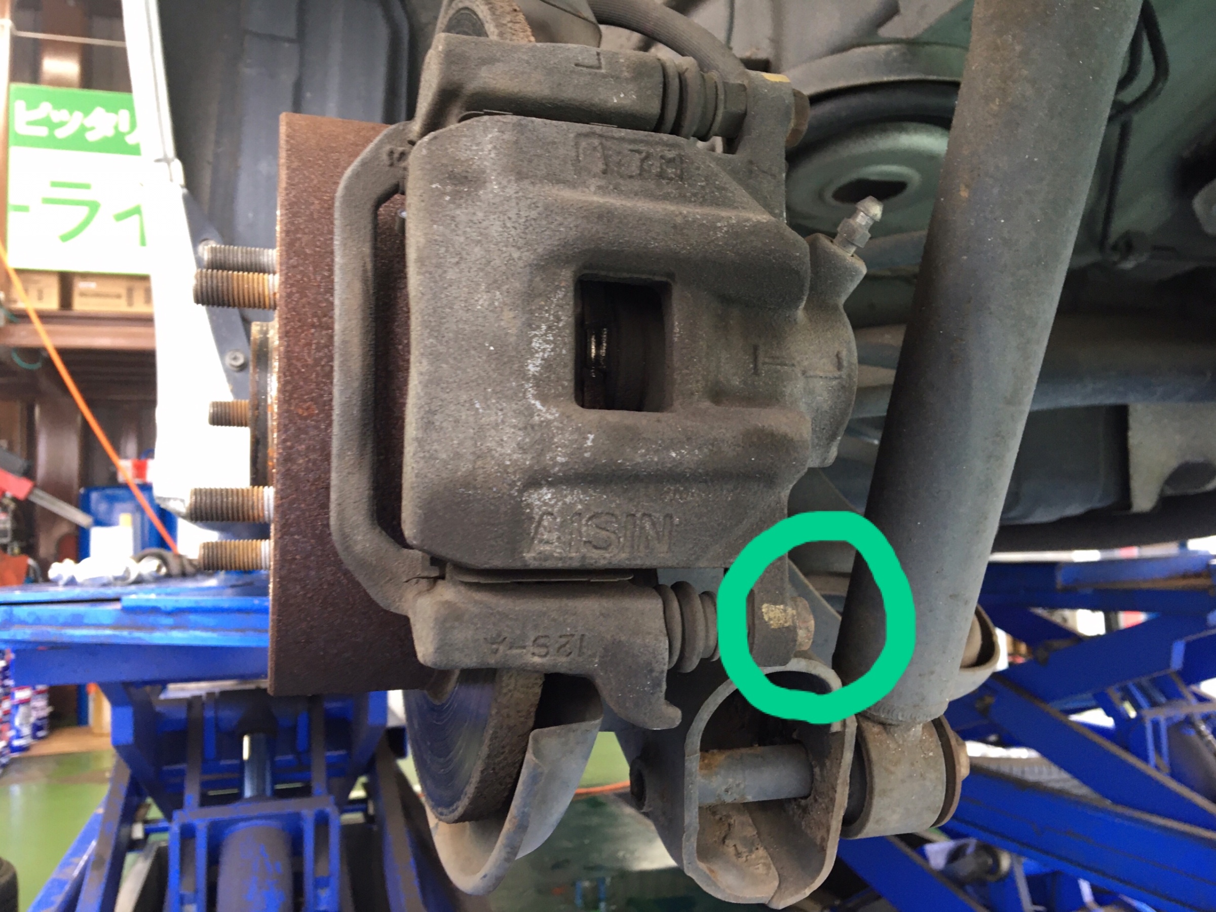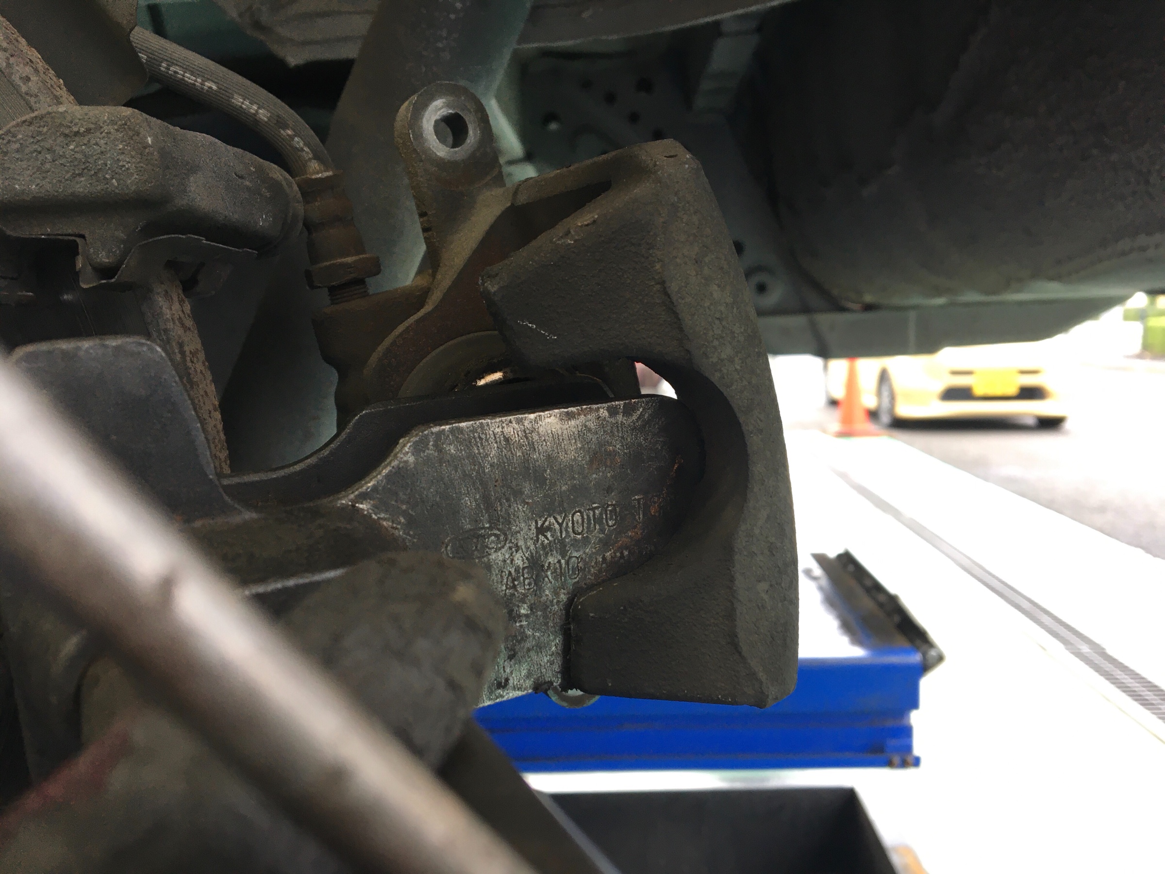 まず、キャリパーのネジを取り外してキャリパーを上げます。