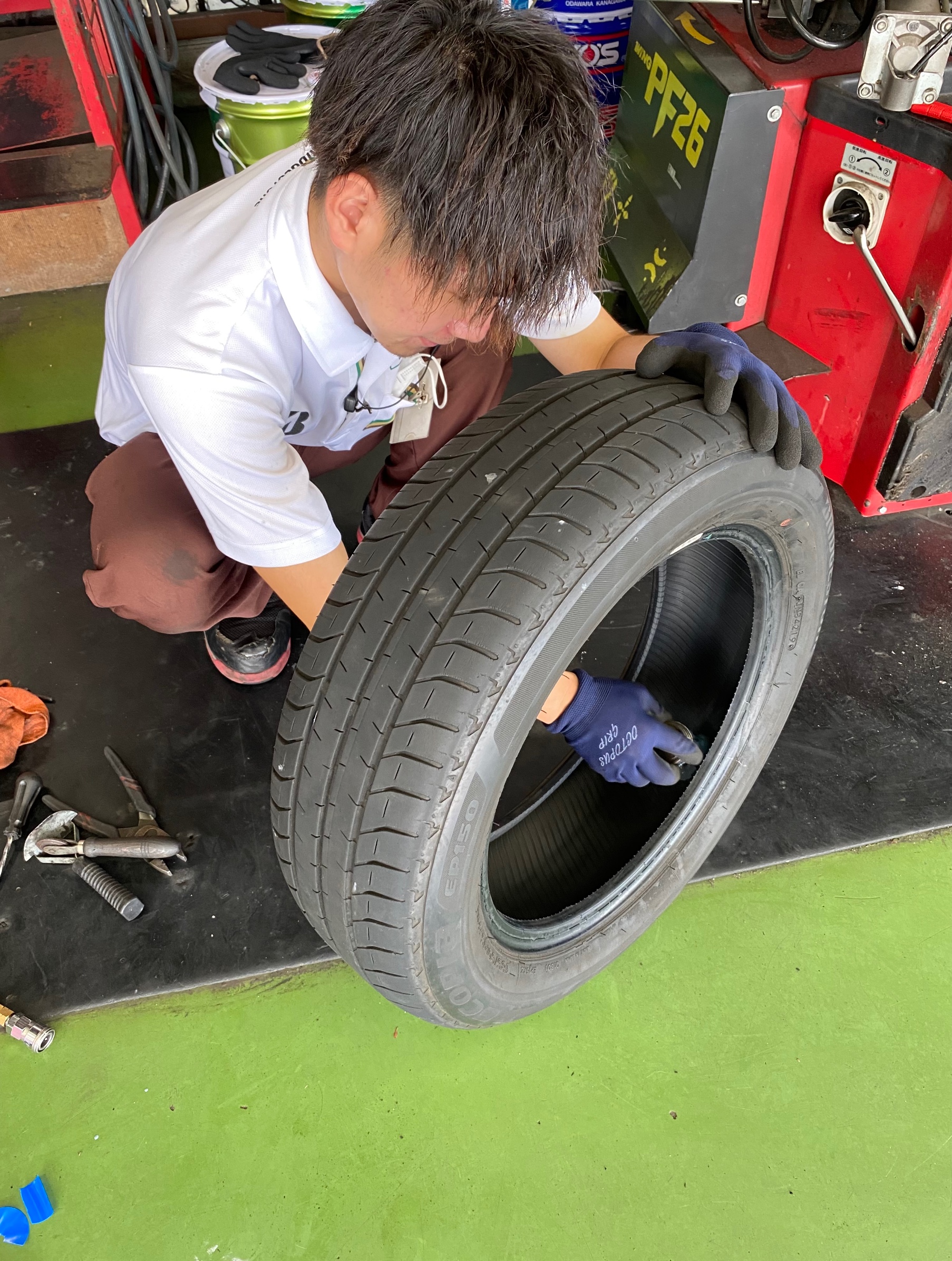 今回は内面修理になります。内面修理とは、タイヤを外し内側から修理するやり方です。