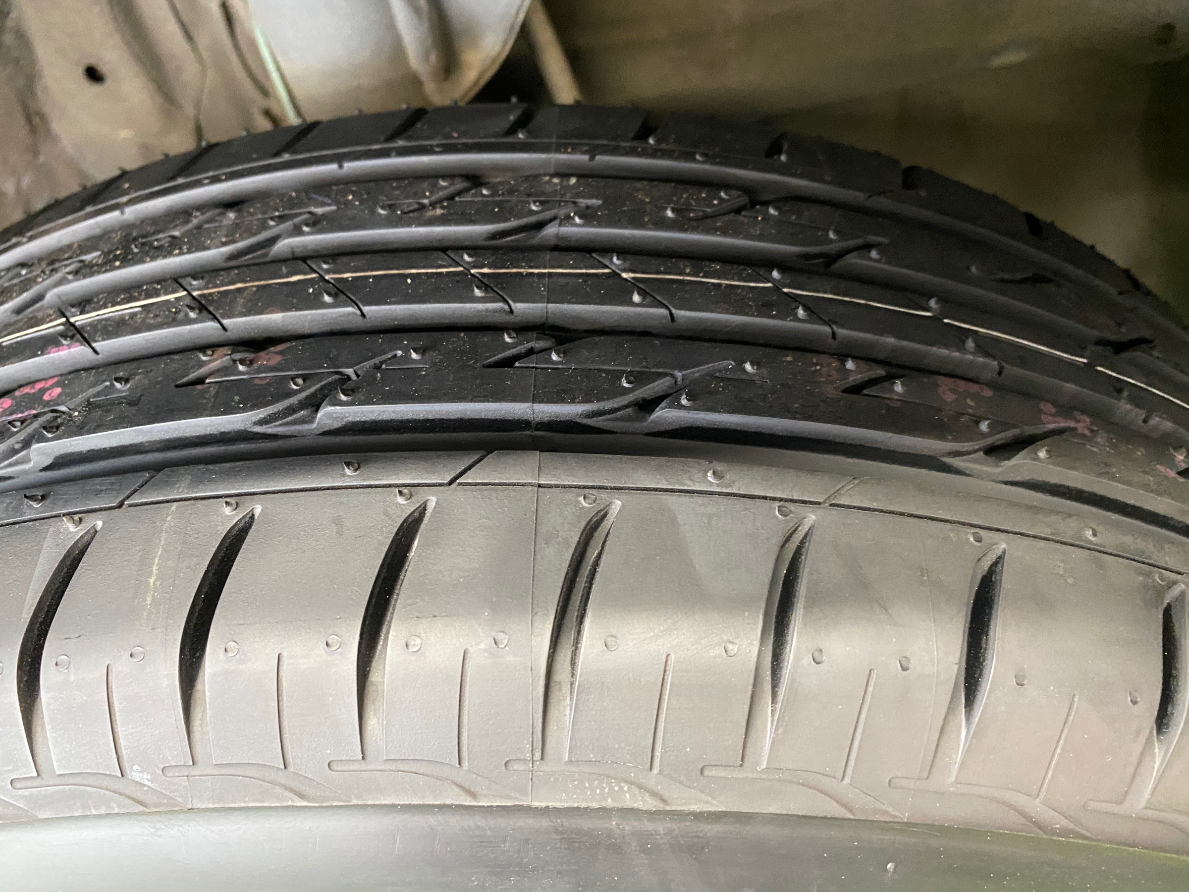 タイヤは、溝が減っていて片減りしていました。