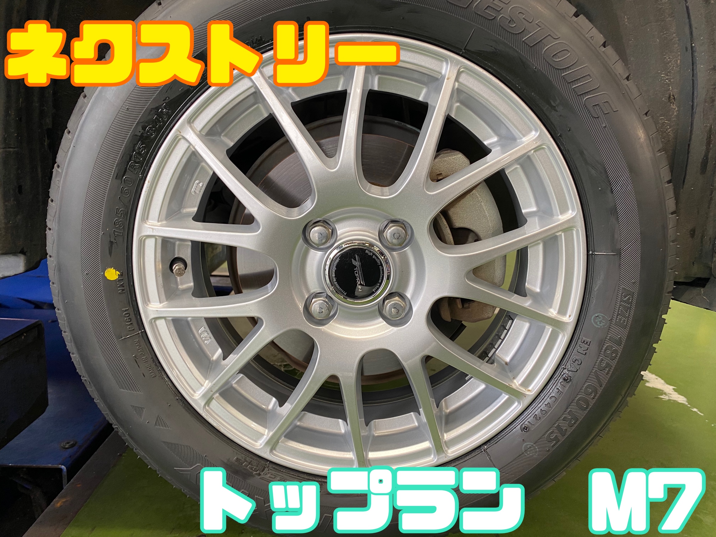 今回のタイヤはネクストリーというベーシックタイヤになっております。ブリヂストンの7つの性能、低燃費性能・ライフ性能・ドライ性能・ウェット性能・直進安定性・静粛性・乗り心地性などがバランスよくとれたタイヤになっております。