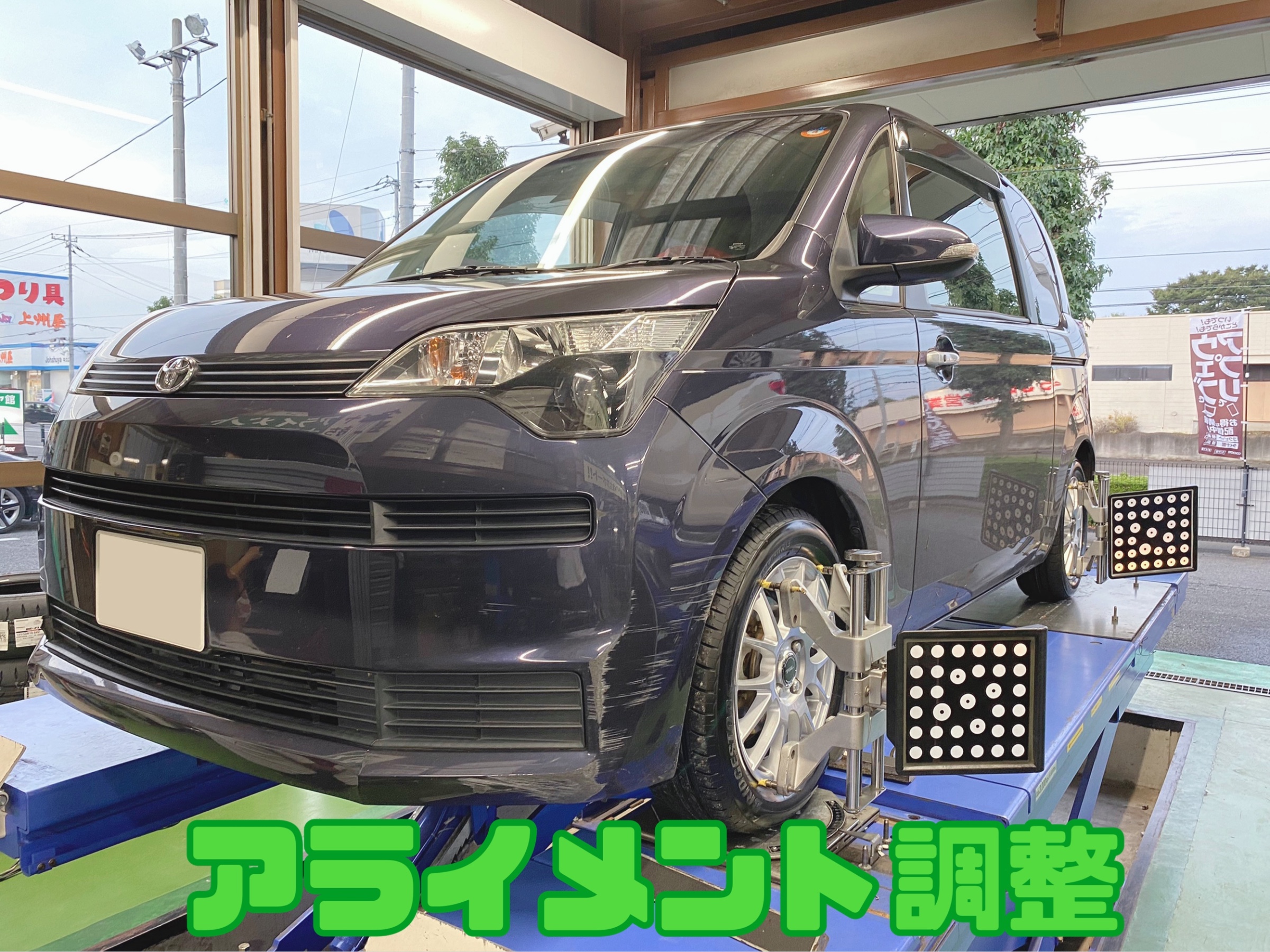 アライメント調整とは、骨盤矯正みたいなもので、タイヤにも内股・蟹股になっていきます。そうなると今回のような片減りの原因に繋がります。なのでタイヤの軸を真っ直ぐに調整していきます。