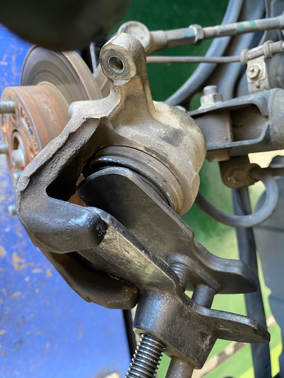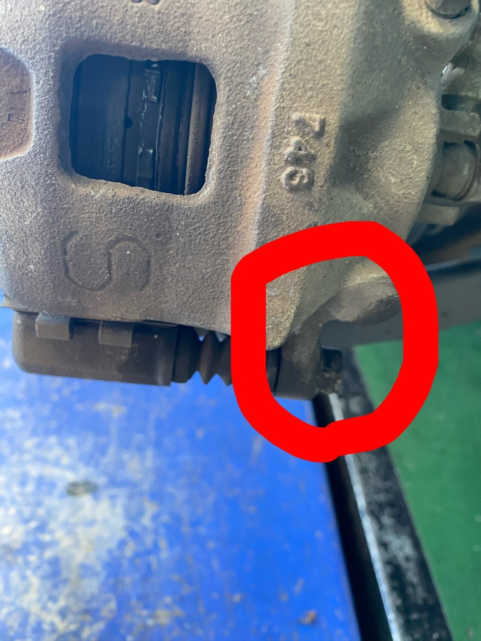 まずはこちらのネジを緩めブレーキキャリパーを外します。