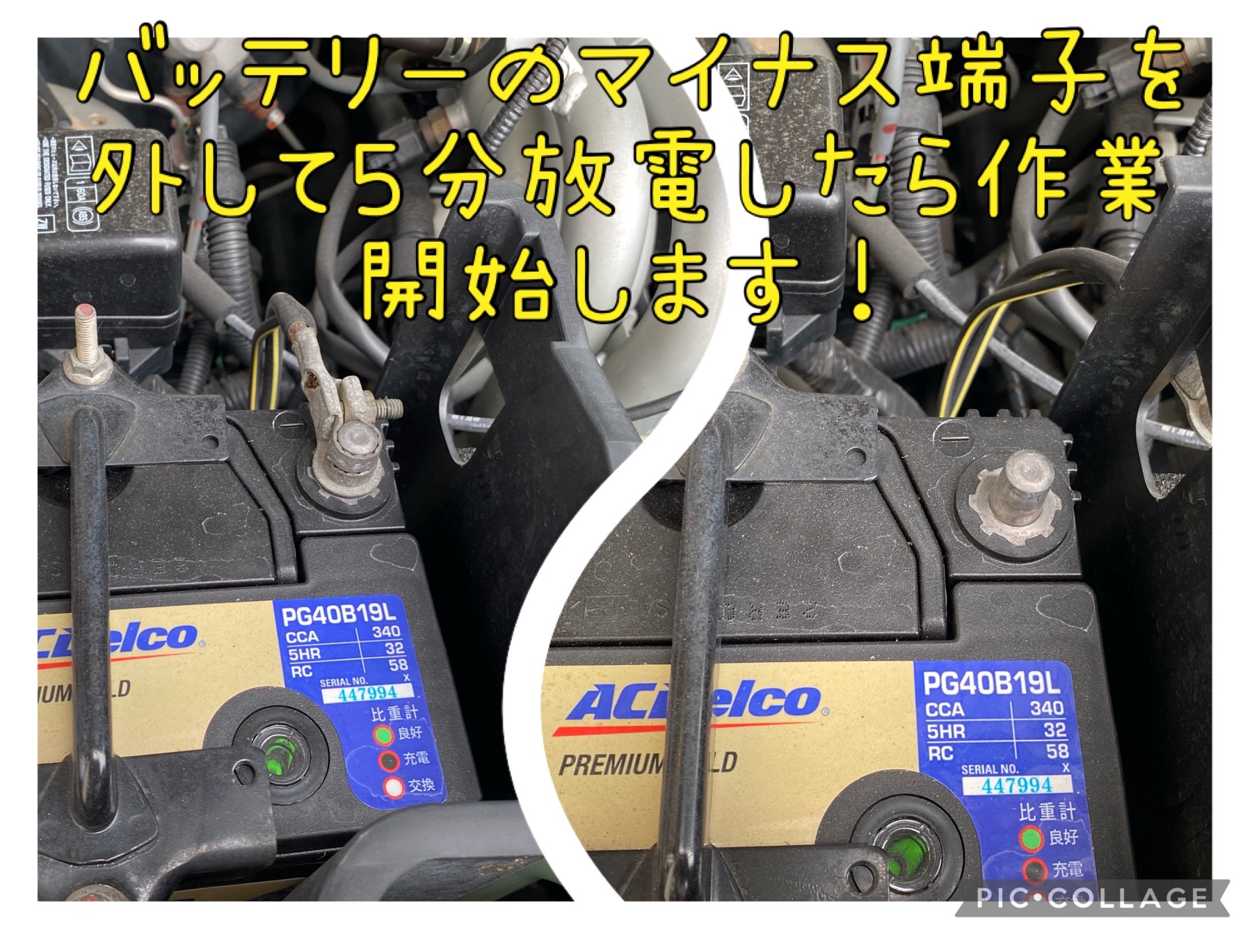 エアバックが誤作動しないように5分ほど放電させます。