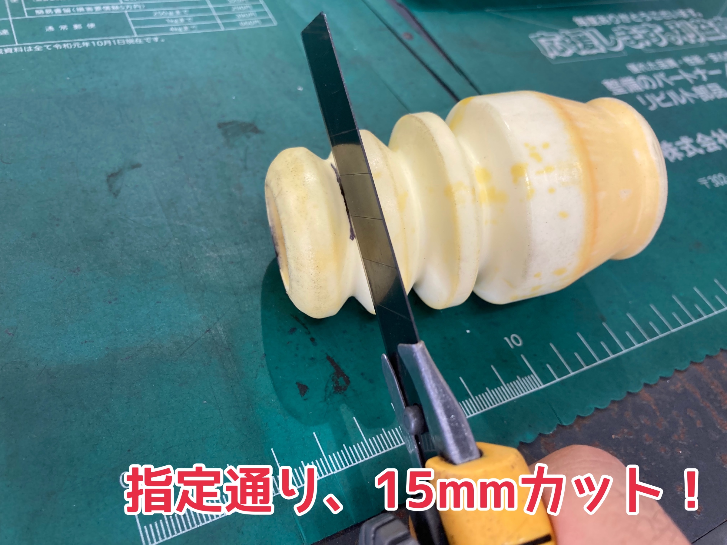 スプリング交換の際に、↓のようにラバーをカットしてから再度セットして組みつけをします。