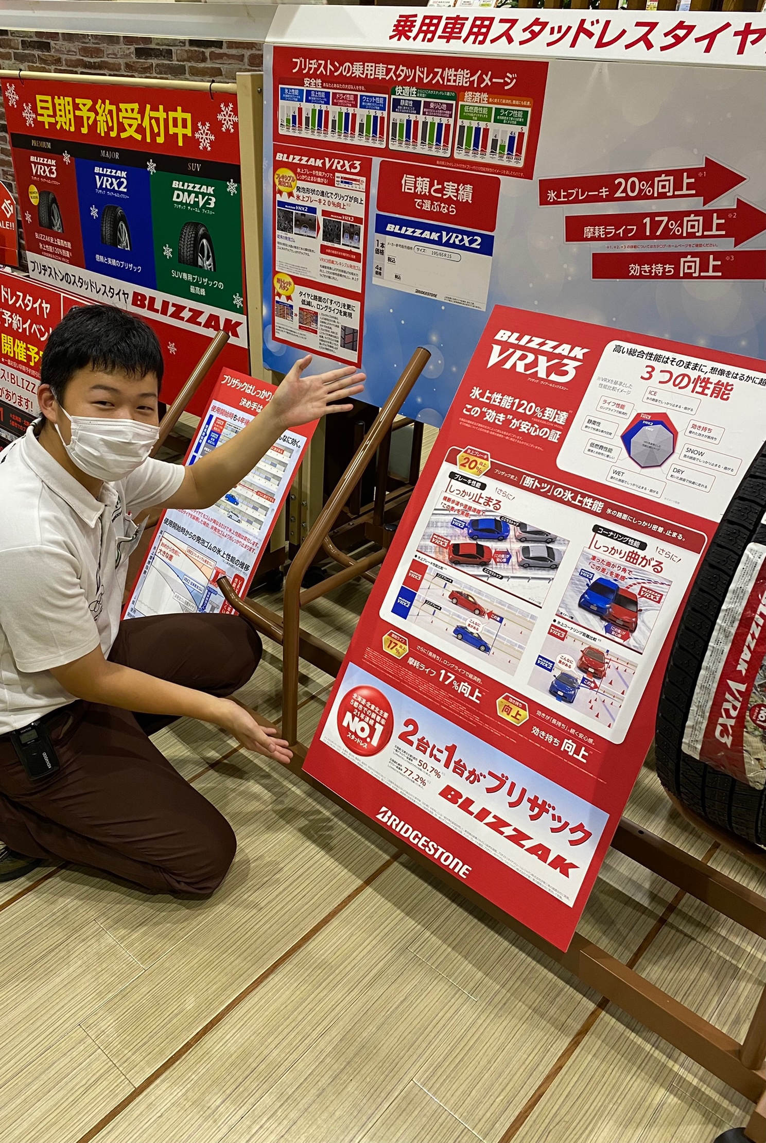 こちらは去年でた、ブリザックのVRX3になります!北海道装着率20連続No.1のスタッドレスで、雪で過酷な地域で長年愛され続けています。それだけ安心と信頼あるタイヤになっております。