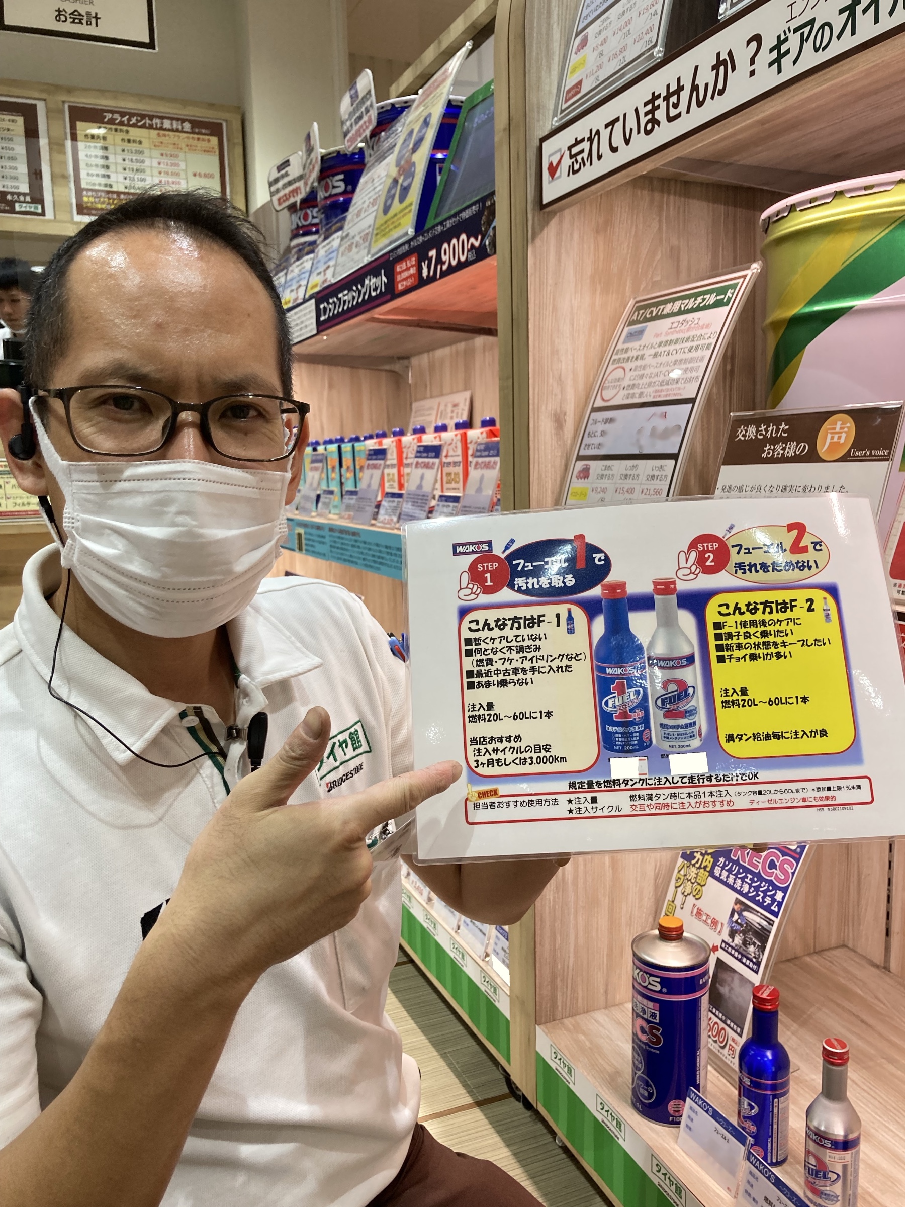 お車に合わせて、こちらからお客様にご提案させていただくこともありますので、当店にお越しの際はぜひ添加剤コーナーを見ていってくださいね!